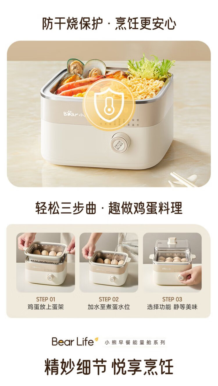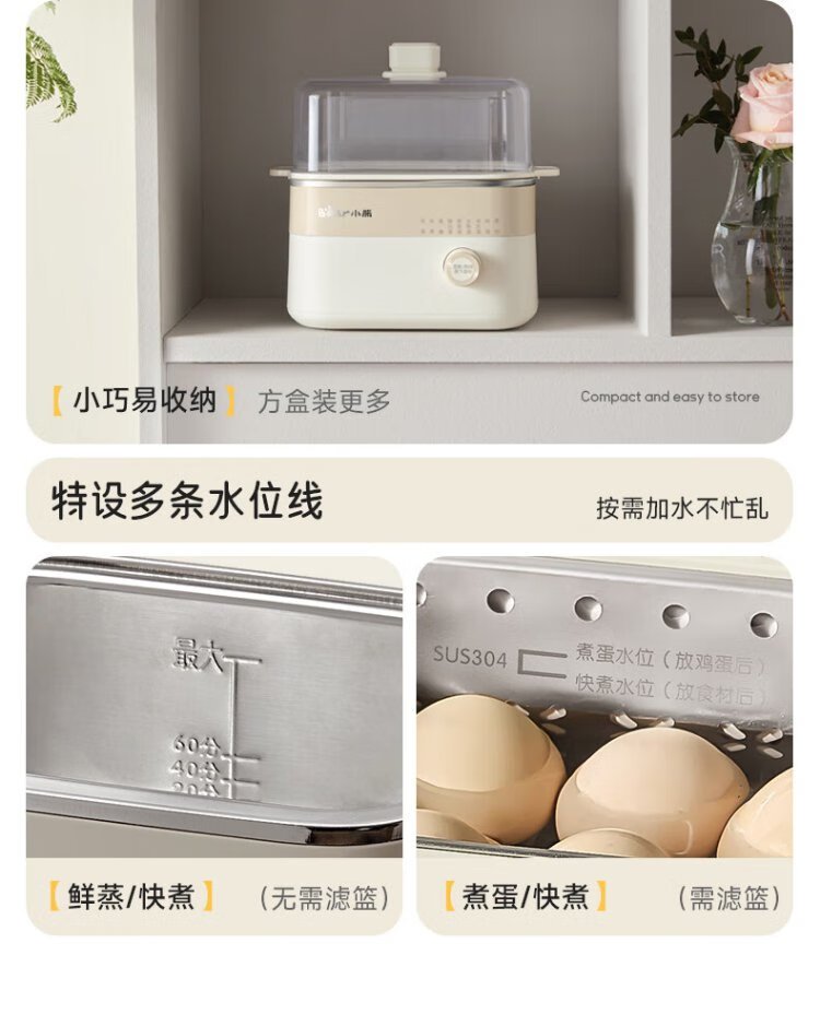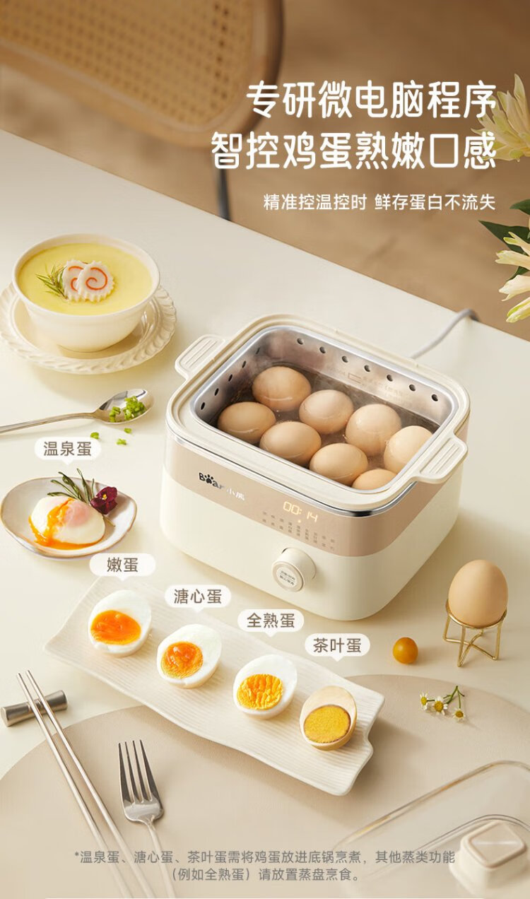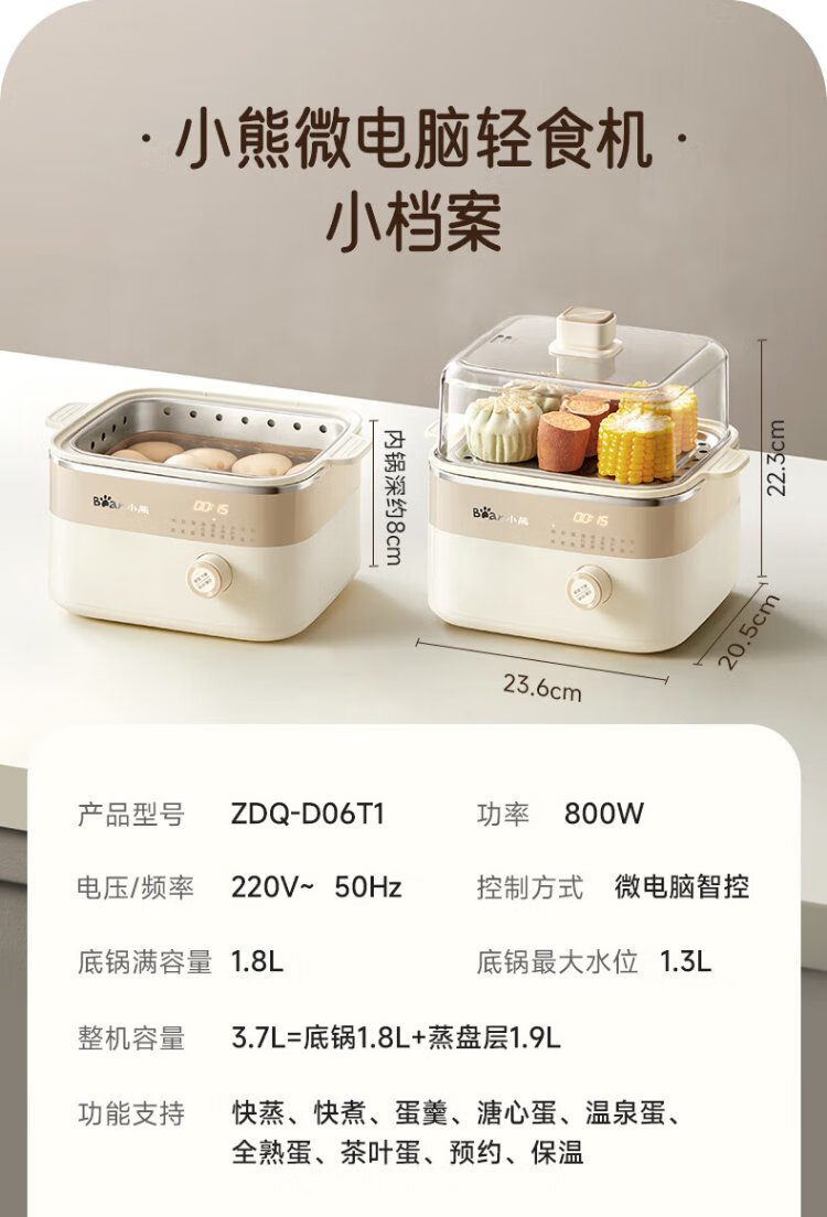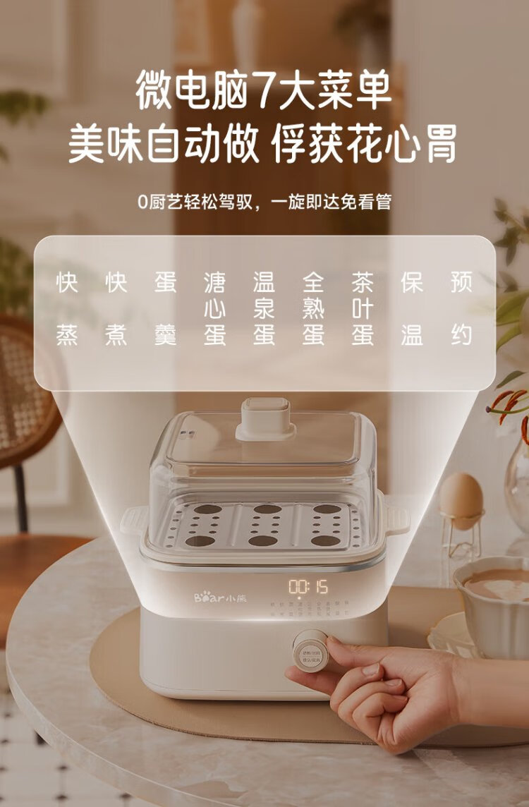 小熊(Bear)电蒸锅 煮蛋器 小型蒸蛋器2-3人用 自动断电 智能预约定时 煮鸡蛋神器早餐一体机D06T1 政府补贴