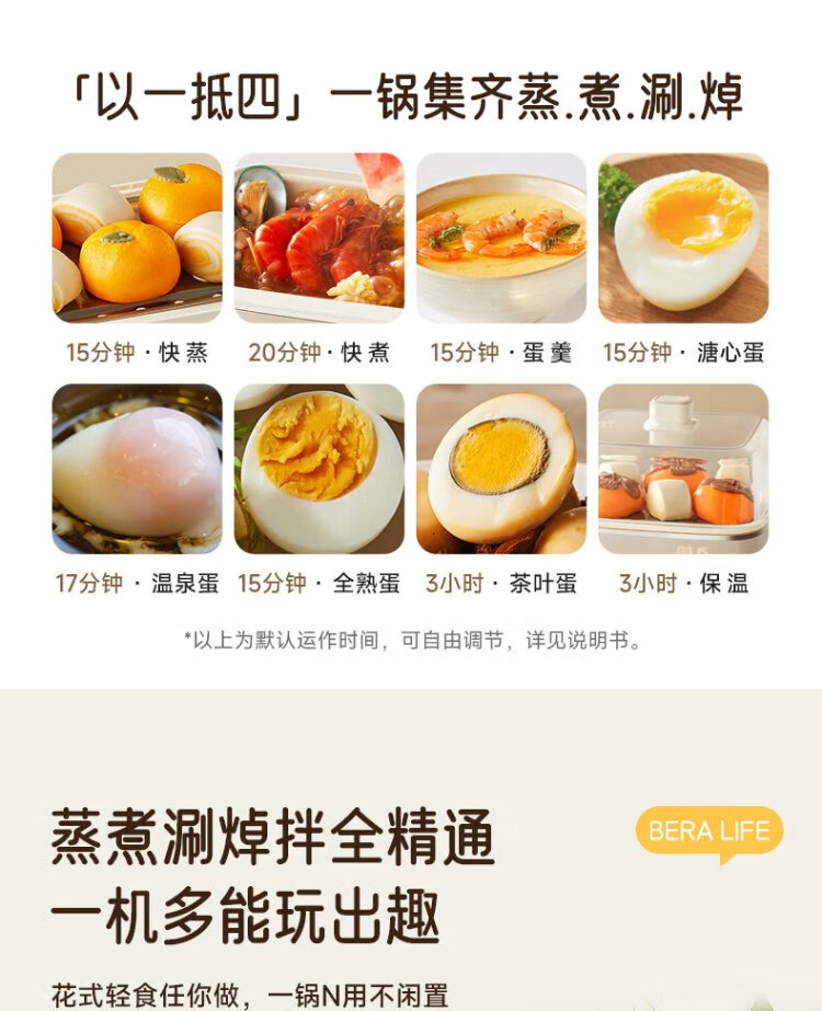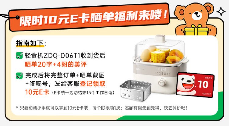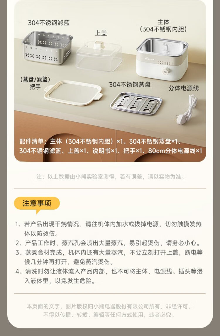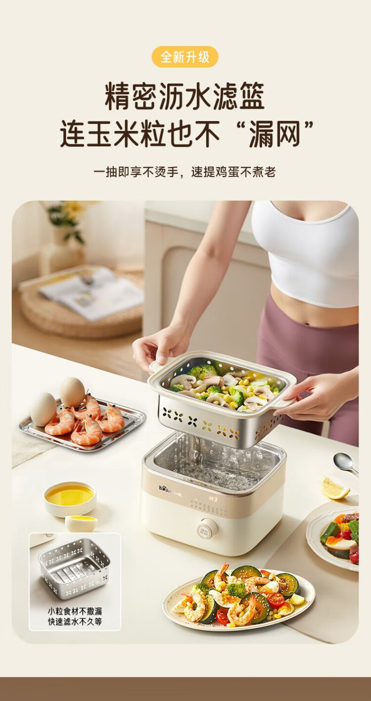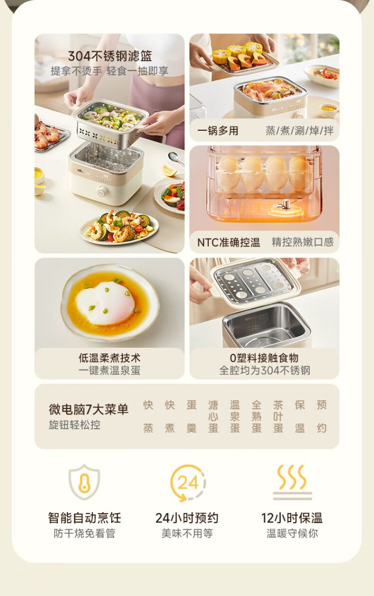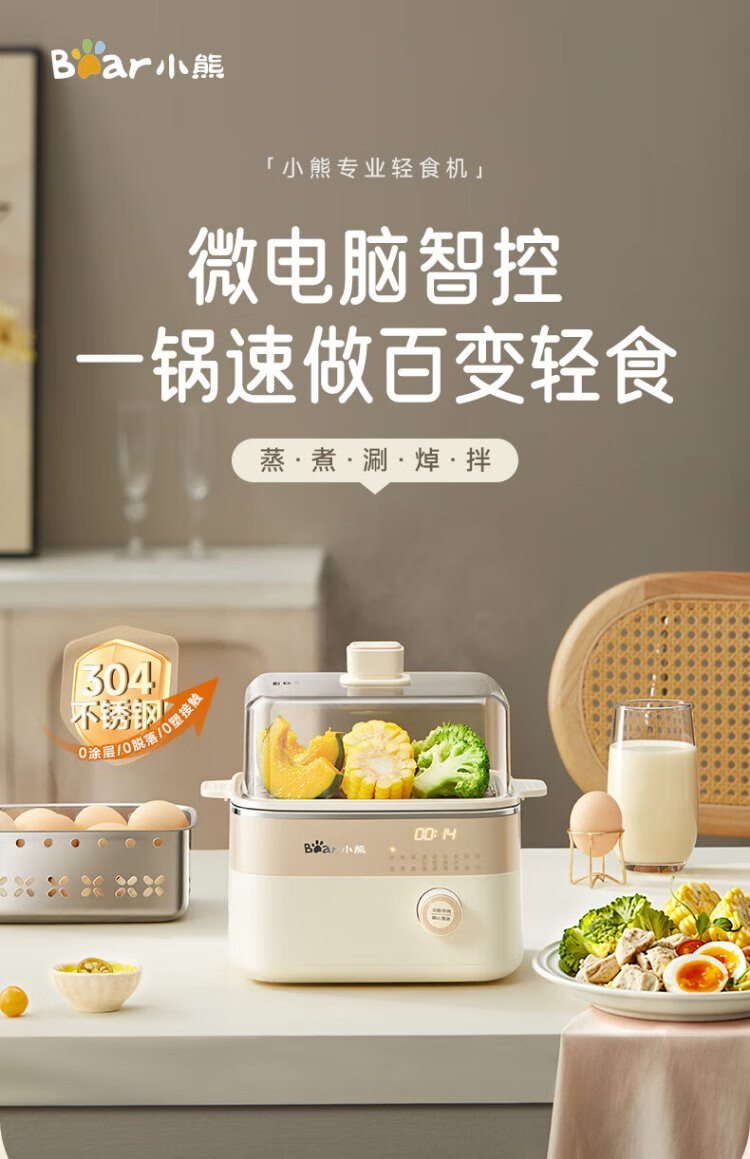 小熊(Bear)电蒸锅 煮蛋器 小型蒸蛋器2-3人用 自动断电 智能预约定时 煮鸡蛋神器早餐一体机D06T1 政府补贴