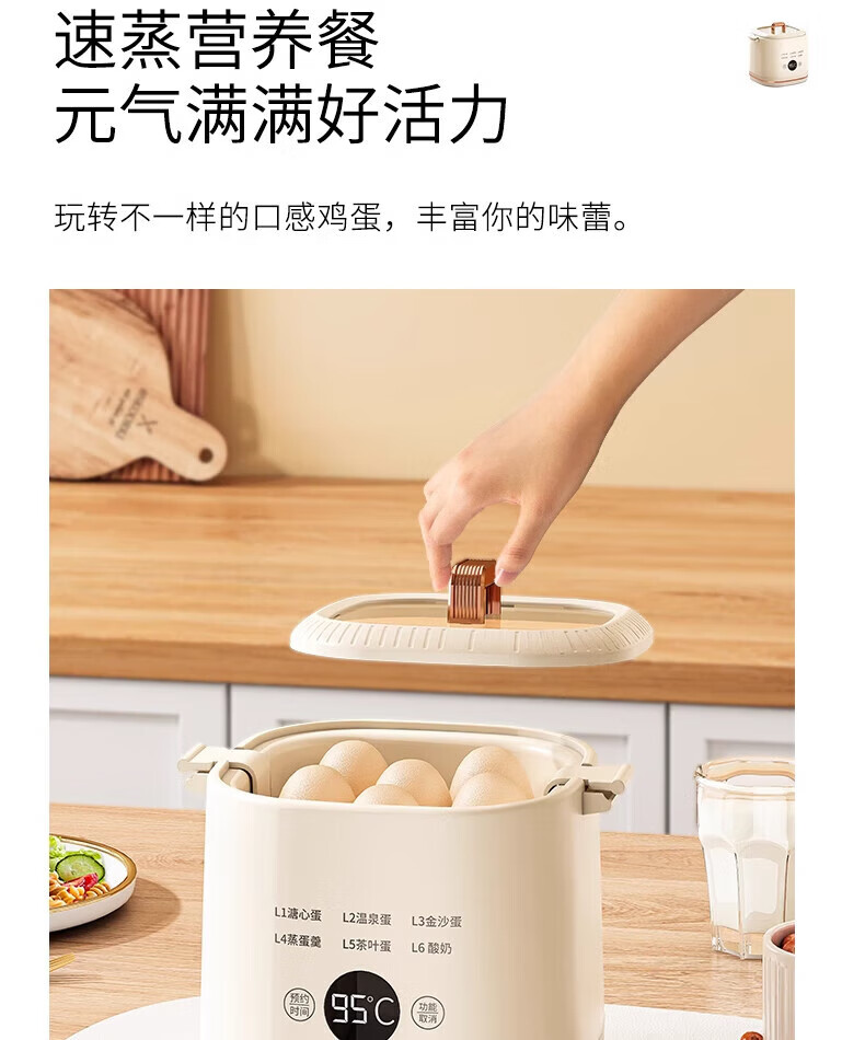 麦舒特德国煮蛋器蒸蛋器高端多功能自动断电家用一人用全自动小型煮鸡蛋早餐神器蒸煮一体机预约定时 单 单层 【基础款】304无缝内胆,预约定时