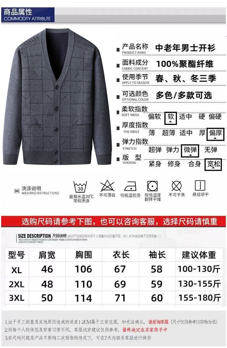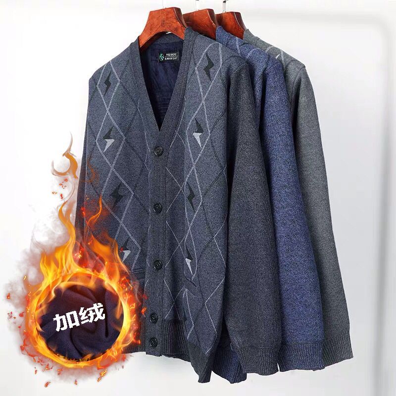 Hengyuanxiang (HYX) autumn and winter middle-aged and elderly men's sweater cardigan dad's thick sweater coat elderly grandpa sweater sweater high-end brand special price off code new cardigan dark gray high-end brand special price off code 4XL recommended 180-200Jin Jin equals 0.5 kg
