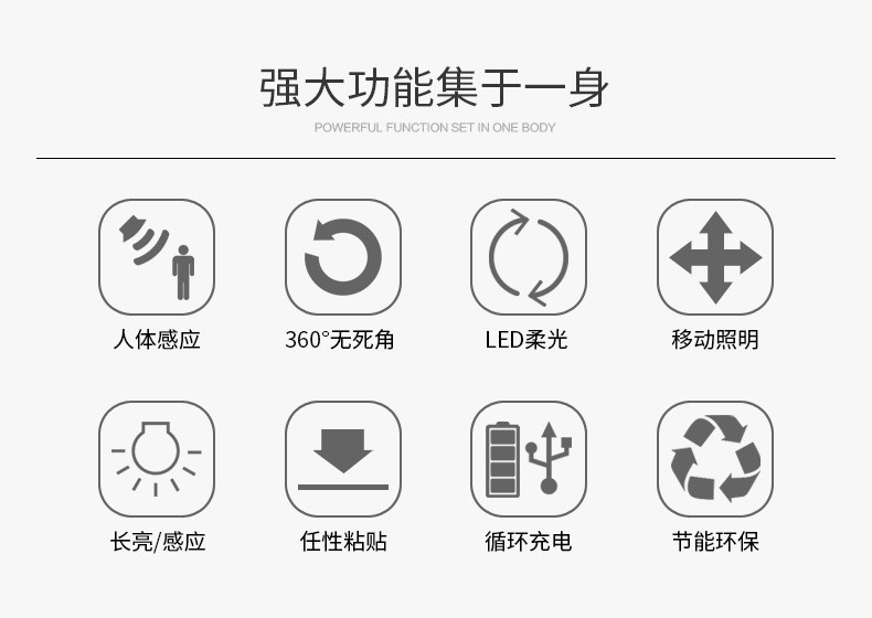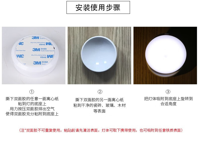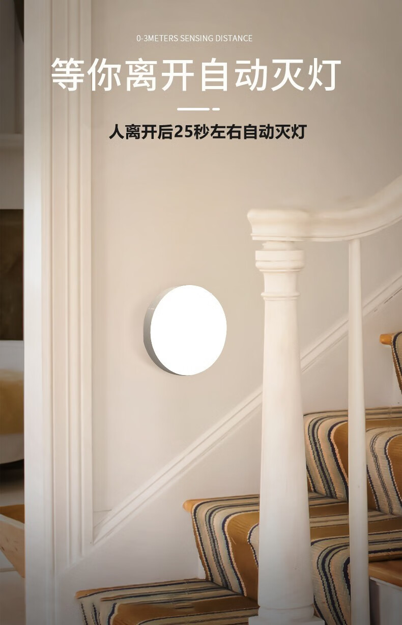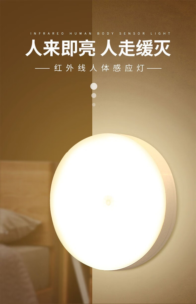 诺锋人体感应360°移动照明LED起夜灯厕所感应灯橱柜楼道小夜灯玄关灯 旋转充电款-暖光【4个超值装】
