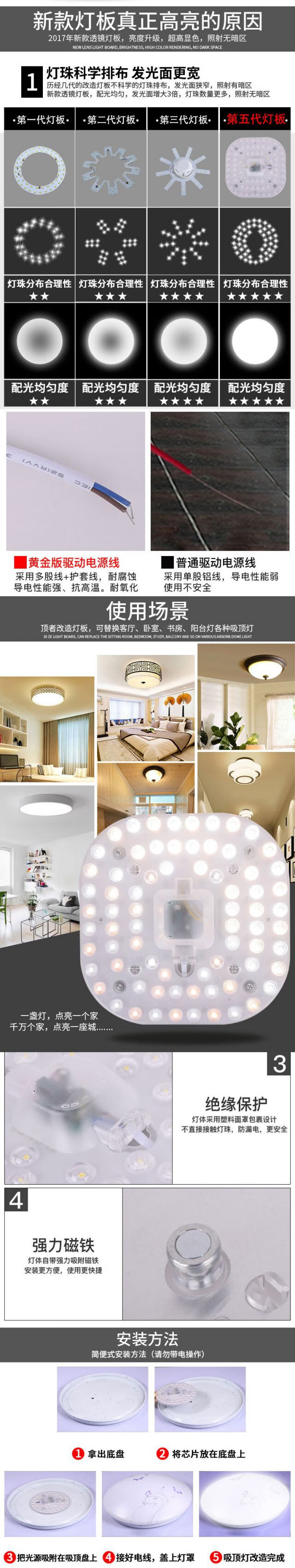 婕茵桐led灯盘 LED灯改造板吸顶灯灯芯节能灯泡贴片灯盘客厅卧室卫生间 超亮方形白光 12w【2个装】