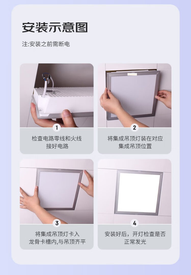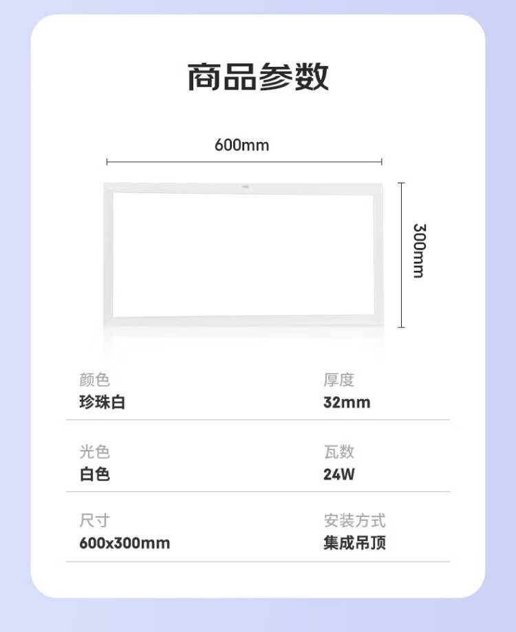 NVC Lighting (NVC) Government Subsidy LED Integrated Ceiling Kitchen and Bathroom Panel Light Flat Panel Light Embedded in Aluminum Frame 24W Pearl White 300*600