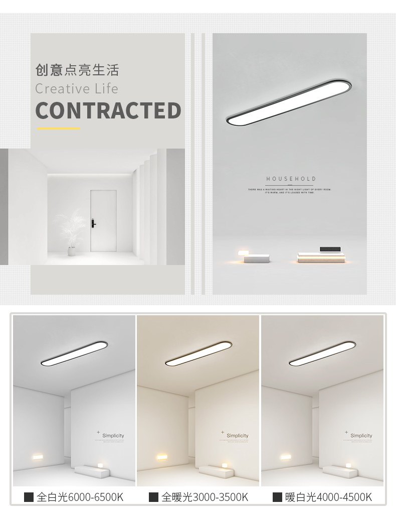 恒岚中山灯具超薄吸顶灯1cm极简长条灯led阳台过道玄关客厅卧室简约 白光 40*20cm(白框)
