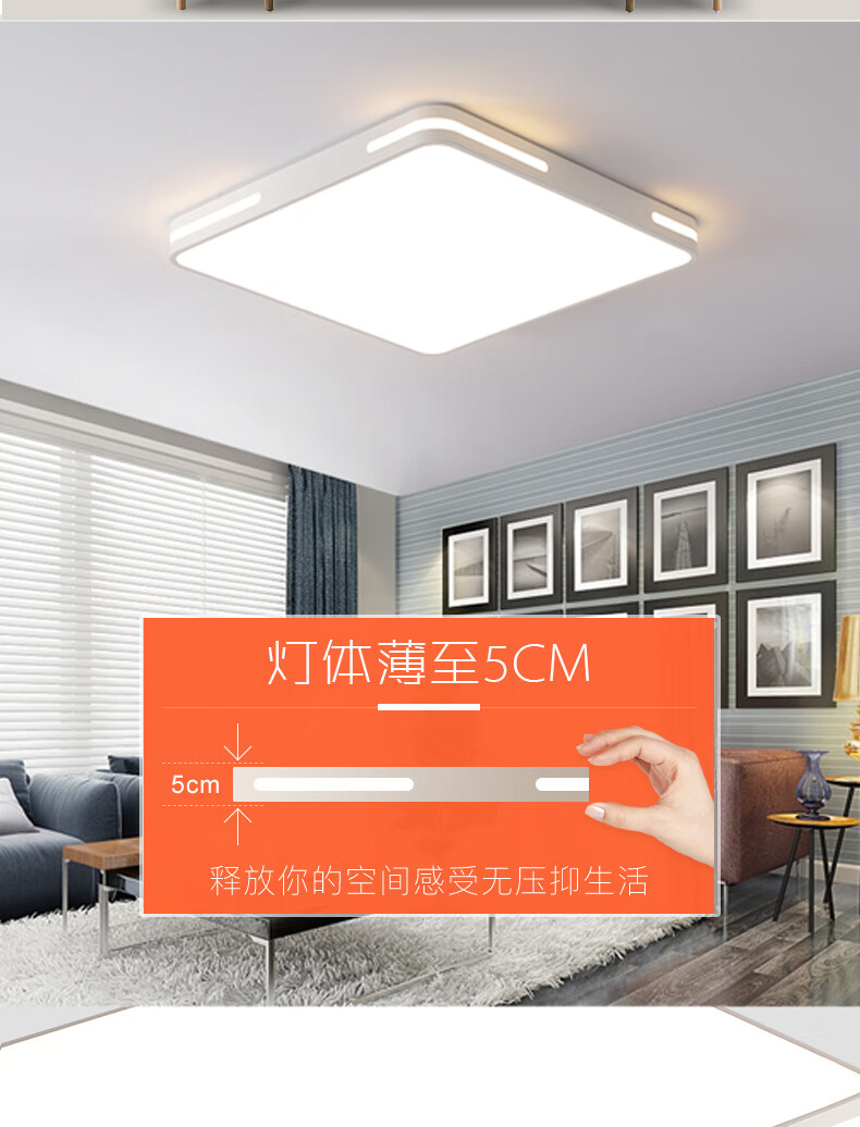 祎琳(yilin)LED正方形卧室灯简约现代大气客厅灯家用led吸顶灯具2023款 白40*40cm三色变光36w