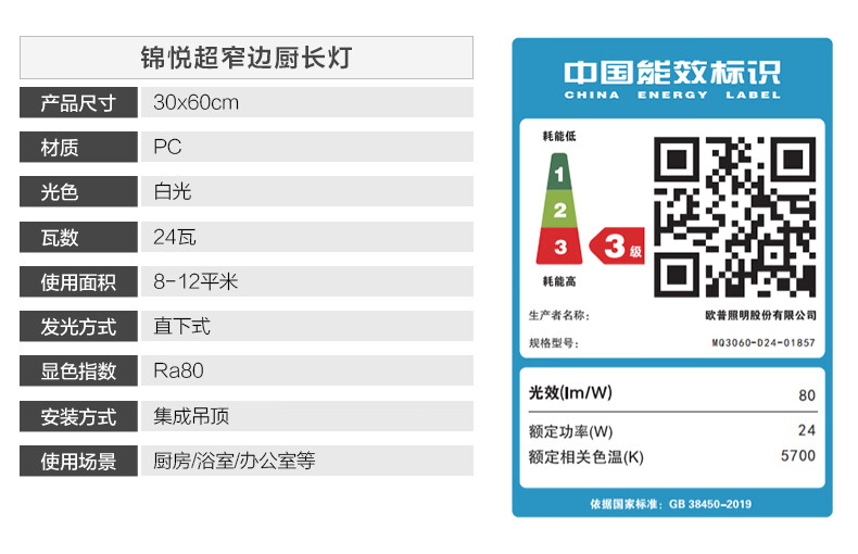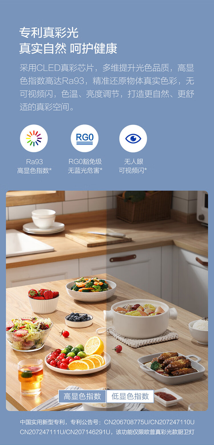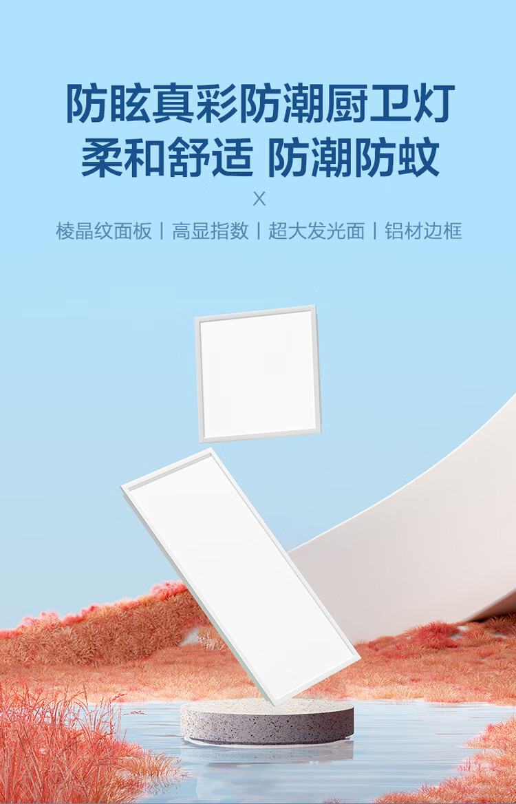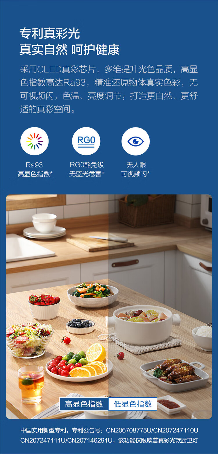 OPPLE integrated ceiling led aluminum gusset ceiling grille flat light embedded kitchen light kitchen and bathroom light rust-proof and oil-proof aluminum frame-22 watt white moisture-proof, rust-proof and oil-proof