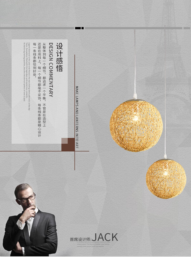 Yilin люстра из конопляного шарика ручной работы в японском стиле из ротанга в китайском стиле ресторанный магазин Хунань коммерческий арт-шар из ротанга лампа дом Цзи Фэн резьба по корню из конопли натуральный цвет 20x20x20cm 24W