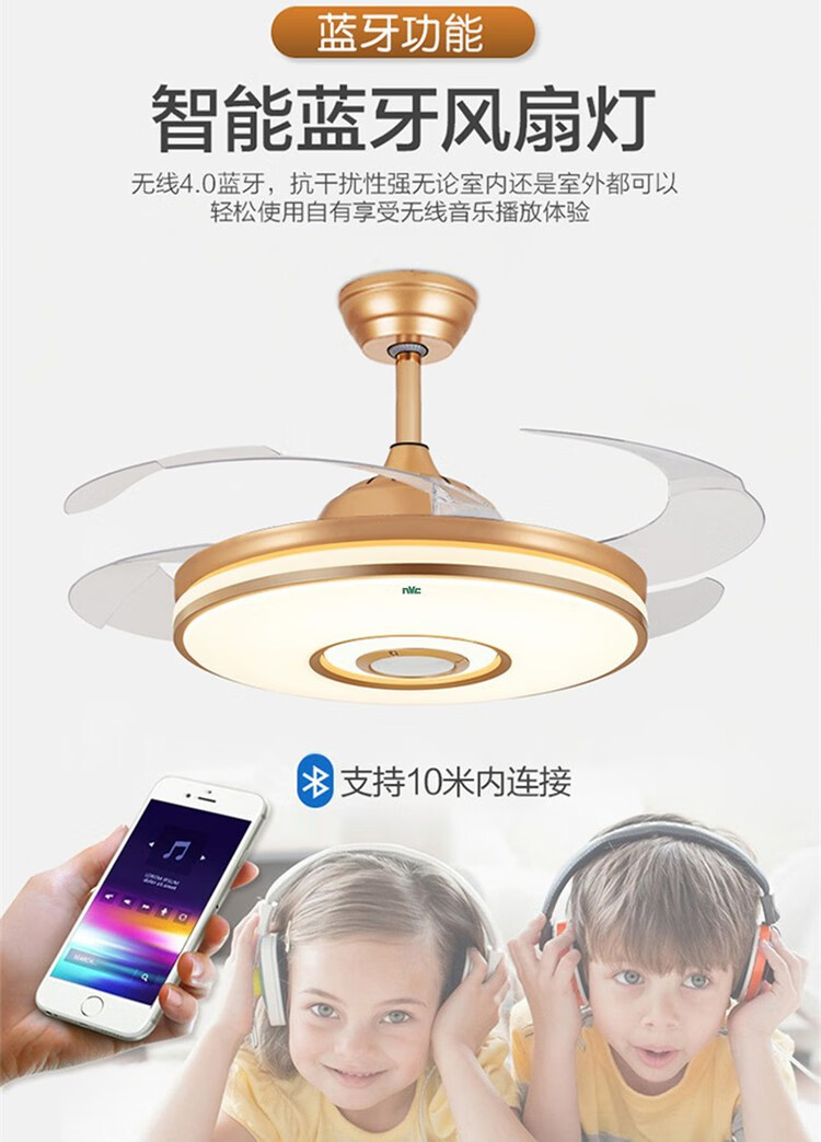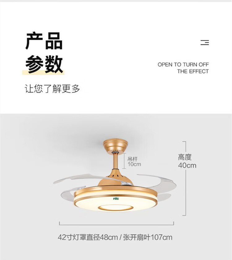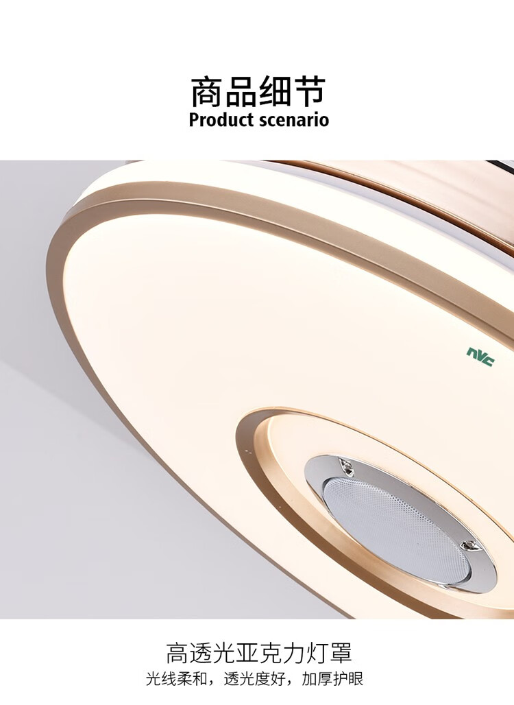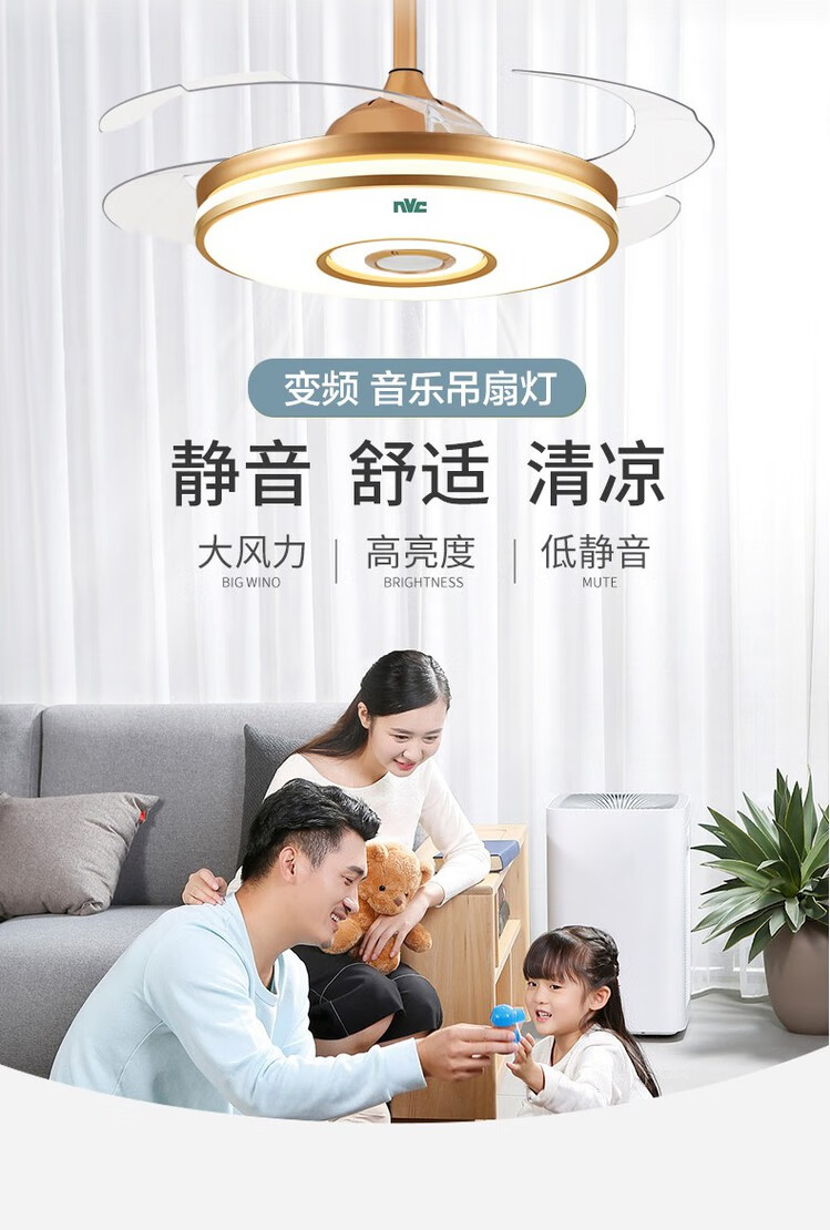 NVC Lighting Super Bright Frequency Converter LED All Copper Large Motor Fan Restaurant Invisible Ceiling Fan Lamp Living Room Bedroom Home Straight Phnom Penh 42 Inch 72W Dimming
