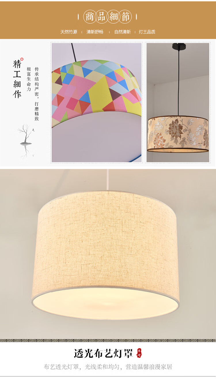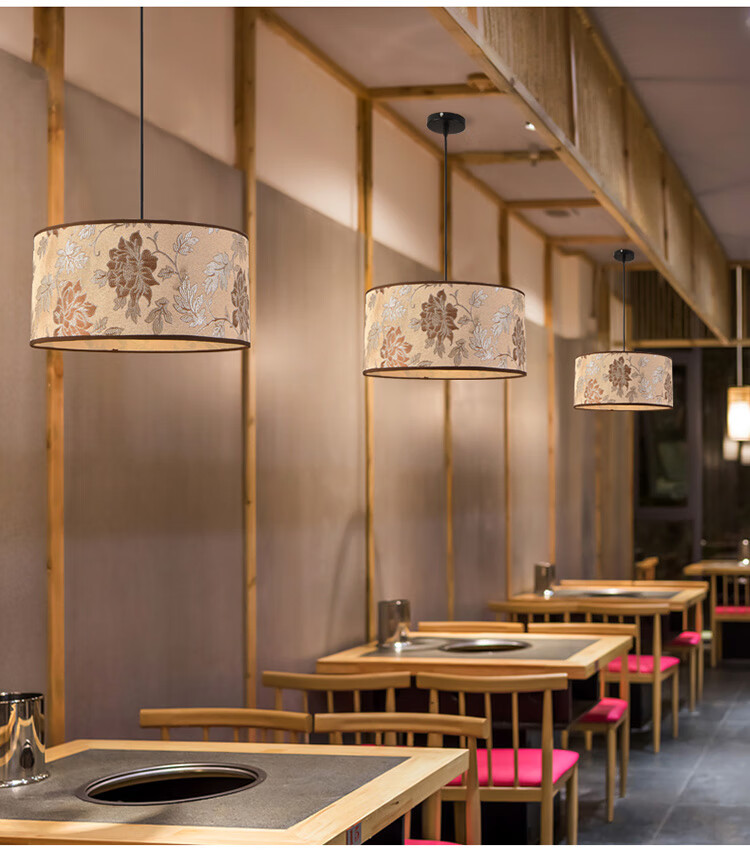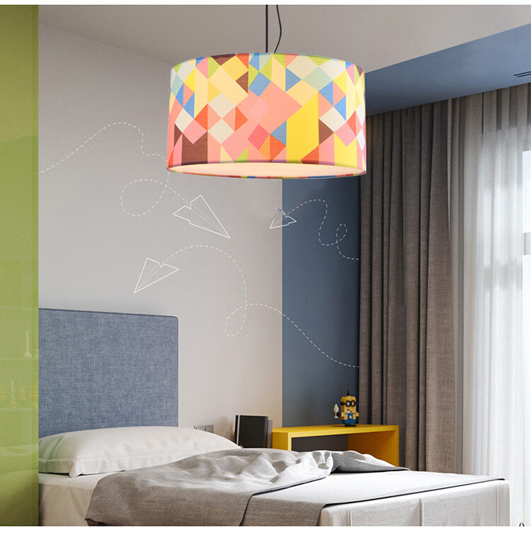Yilin Nordic modern simple linen fabric chandelier dining room bedroom study living room single head Internet celebrity creative factory lamp diameter 30CM light apricot color