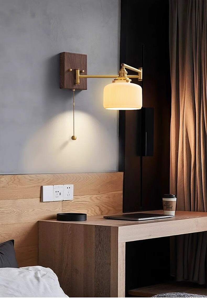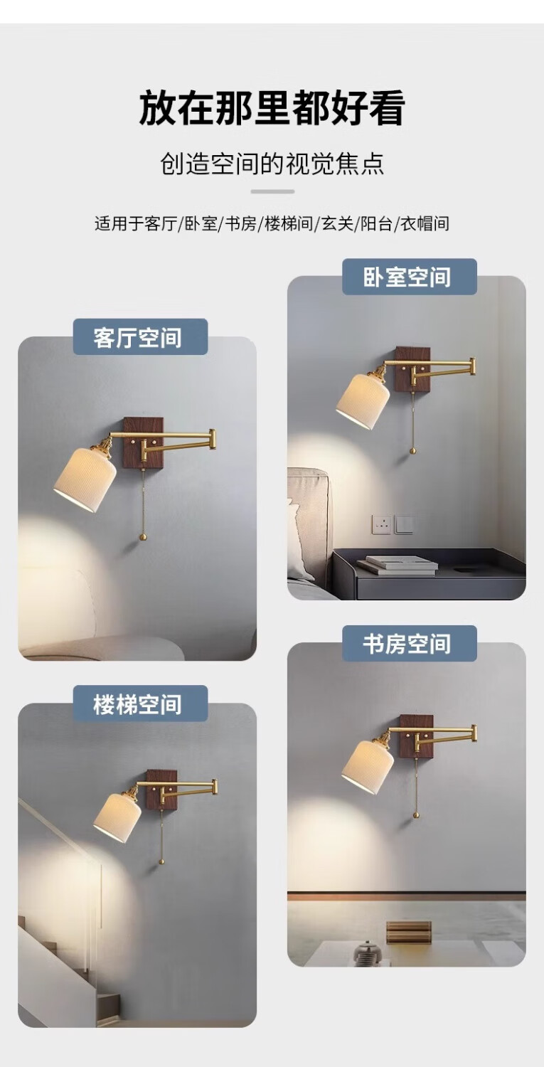 Zhong Shuai Japanese retro style folding wall lamp bedroom bedside designer all copper living room creative pull rope switch retractable lamp D model all copper + ceramic stepless dimming