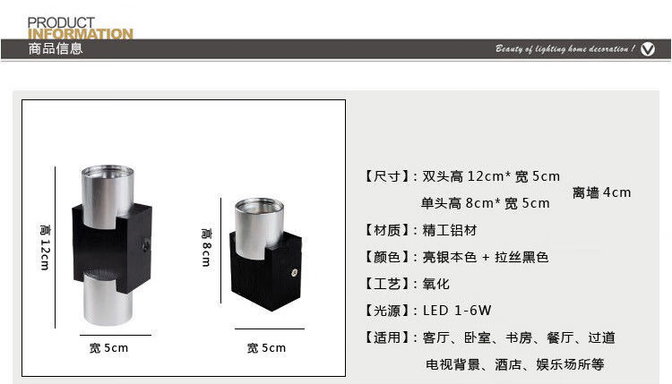Yilin LED wall lamp bedroom bedside aisle corridor light up and down club ktv hotel decoration background wall colorful remote control 2W double-head warm light high-brightness model