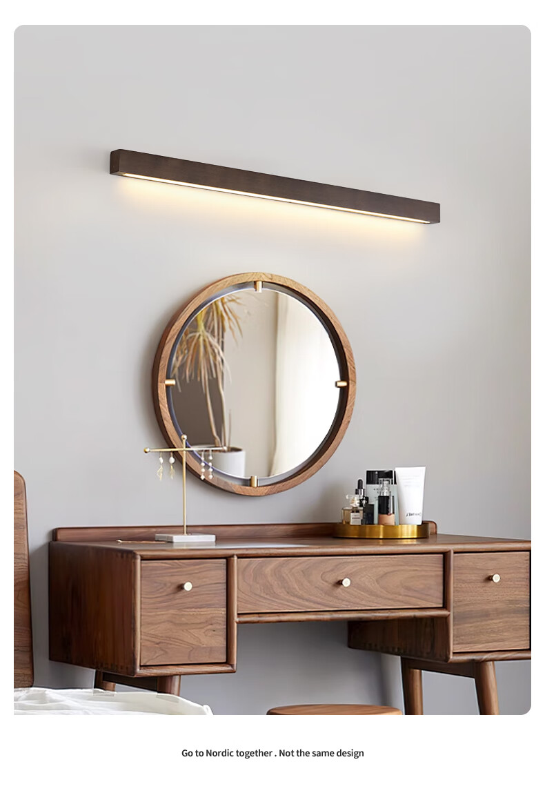 Xishangjiaxi new Chinese style long wall lamp bedroom bedside lamp simple solid wood living room background wall lamp bathroom aisle mirror headlight 80cm 15 watt three-color light
