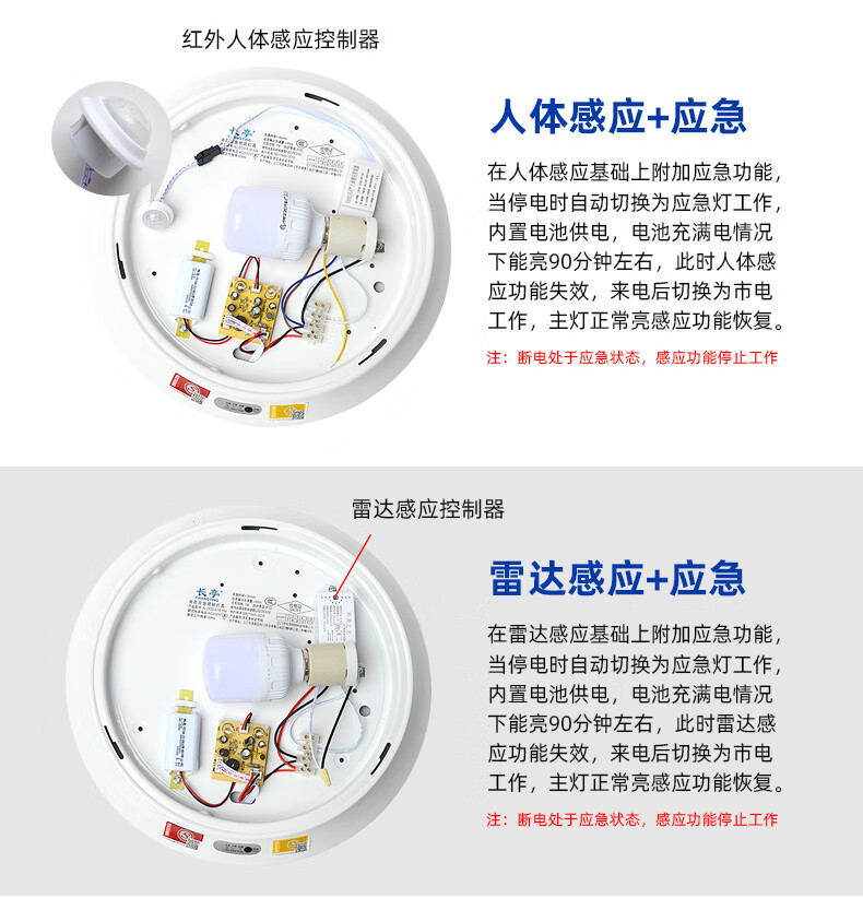 Tin light LED ceiling light corridor aisle staircase human body infrared induction sound and light control emergency fire garage power outage lighting emergency light 24W light source + human body induction