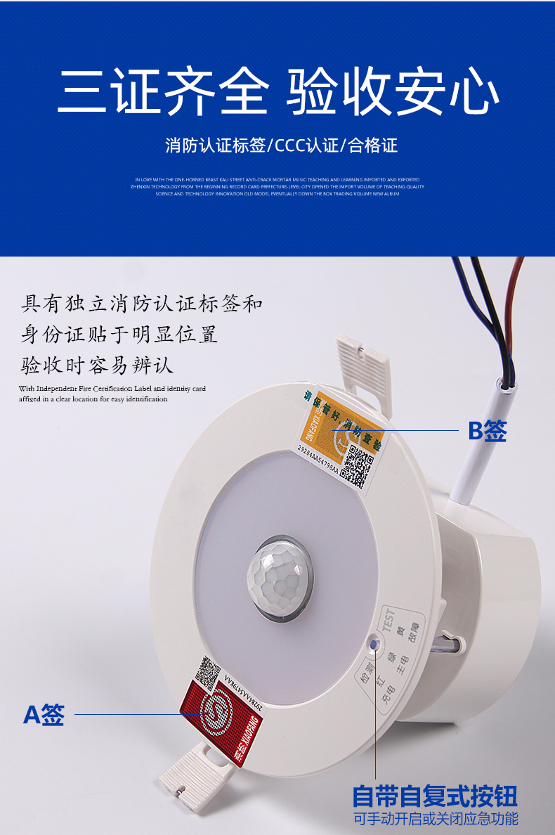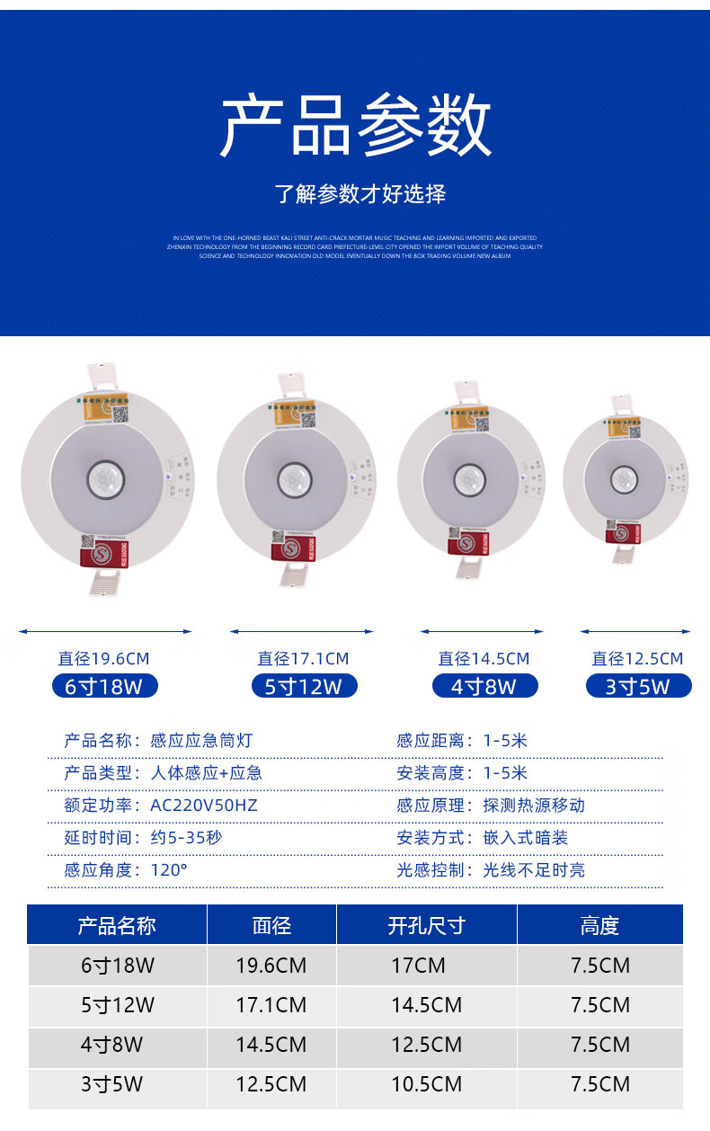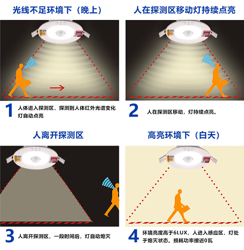 Suoyada Downlight LED d'urgence en cas d'incendie Projecteur intégré Corps humain Ouverture par induction infrarouge 7,5 Éclairage intérieur en cas de panne de courant Downlight d'urgence de 3 pouces Lumière blanche 5W