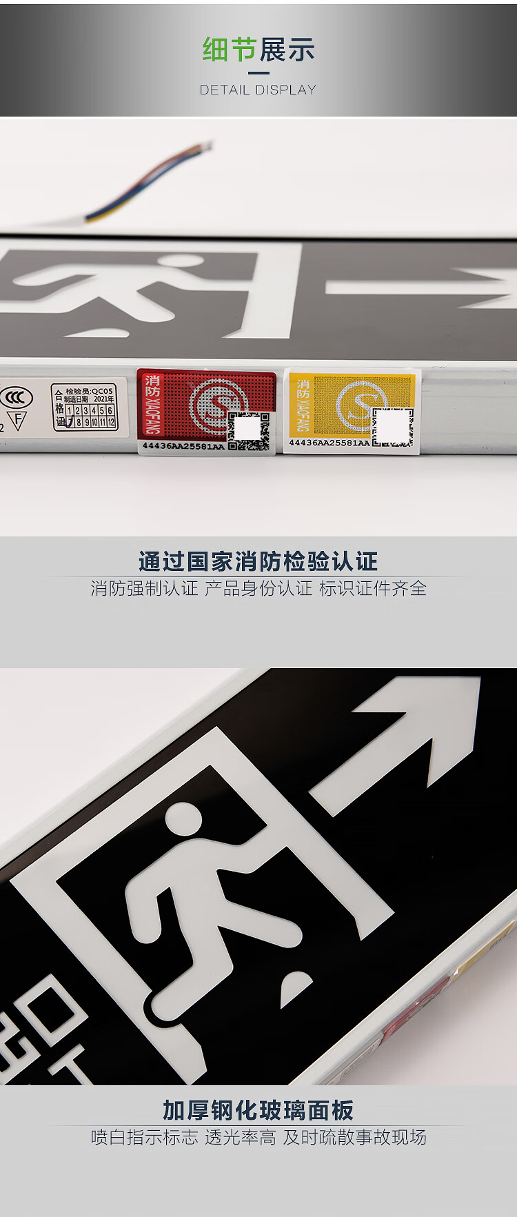 时夏安全出口指示牌LED消防应急疏散标志灯楼层通道带电池接电逃生灯 新国标[双面正向]