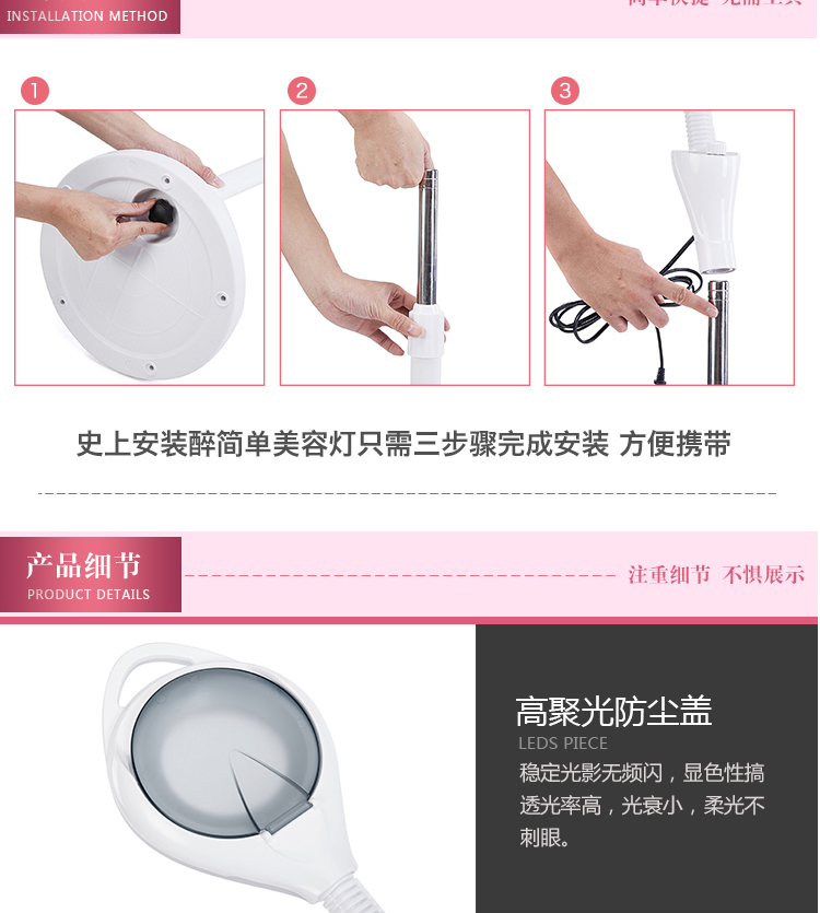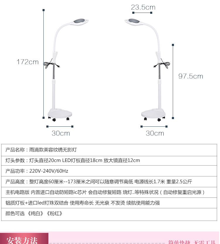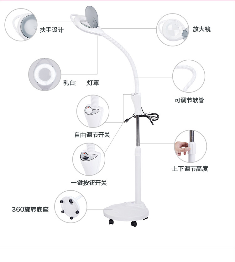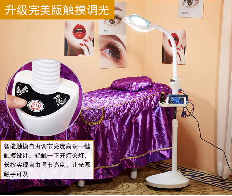Meng Qier Lámpara de belleza Lámpara de bordado con patrón LED Luz fría Manicura portátil, pestañas, acné, acné, cejas Cirugía microplástica Lámpara de pie Versión de 65 vatios con atenuación táctil de polea