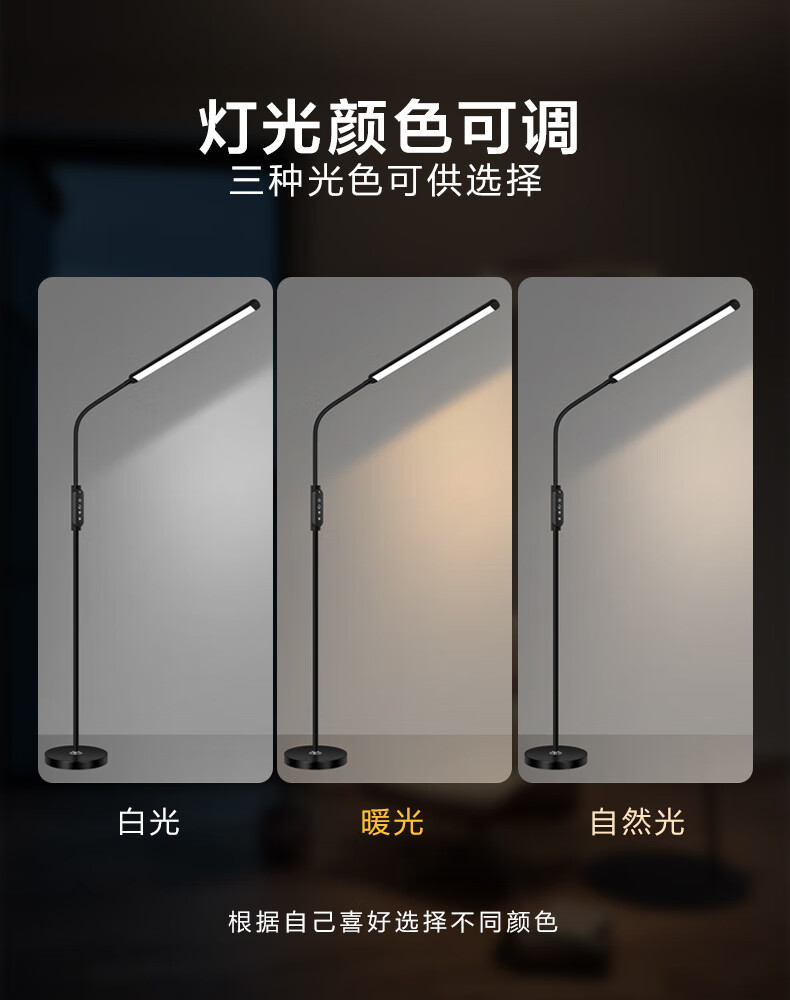 云珀led落地灯调光护眼钢琴灯练琴客厅卧室儿童书房床头阅读灯立式灯 白色触摸+遥控款