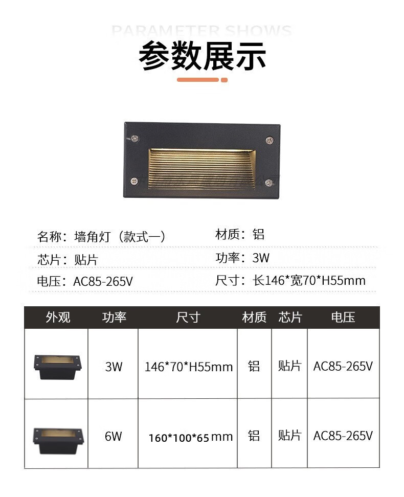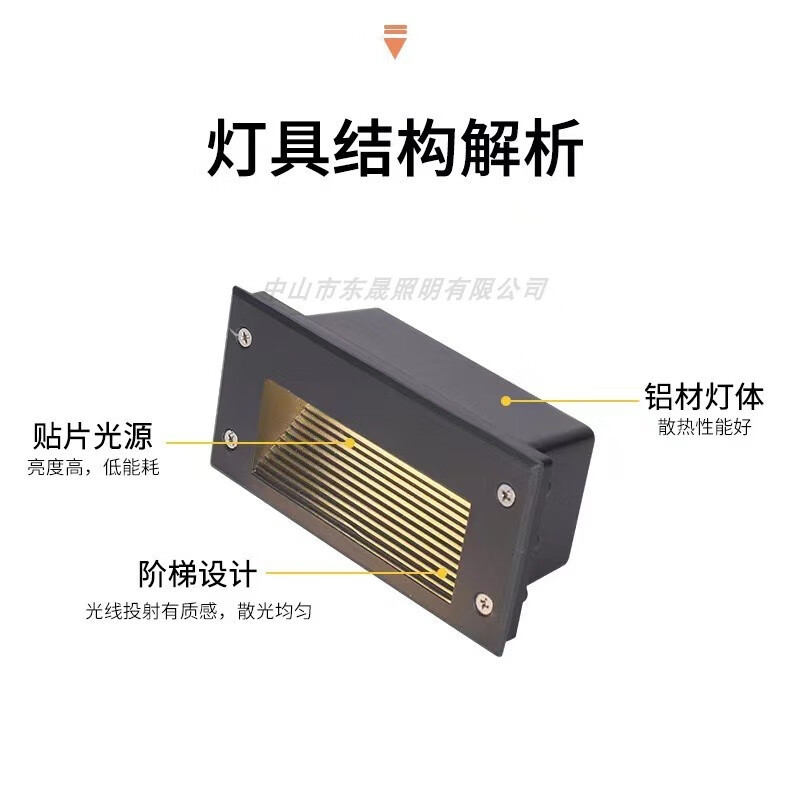 Dongshengshi concealed floor lamp embedded LED step lamp outdoor waterproof corner lamp buried lamp side wall lamp stair step 146*70MM3W white light