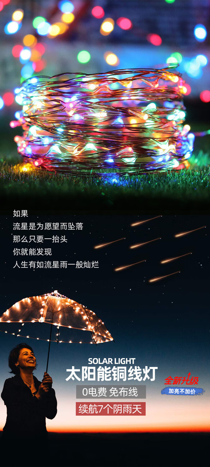 Aroden solar colored lights flashing outdoor waterproof super bright lights with strips for courtyard camping decoration starry led small string lights solar copper wire lights colorful 7 meters 50 lights outdoor waterproof