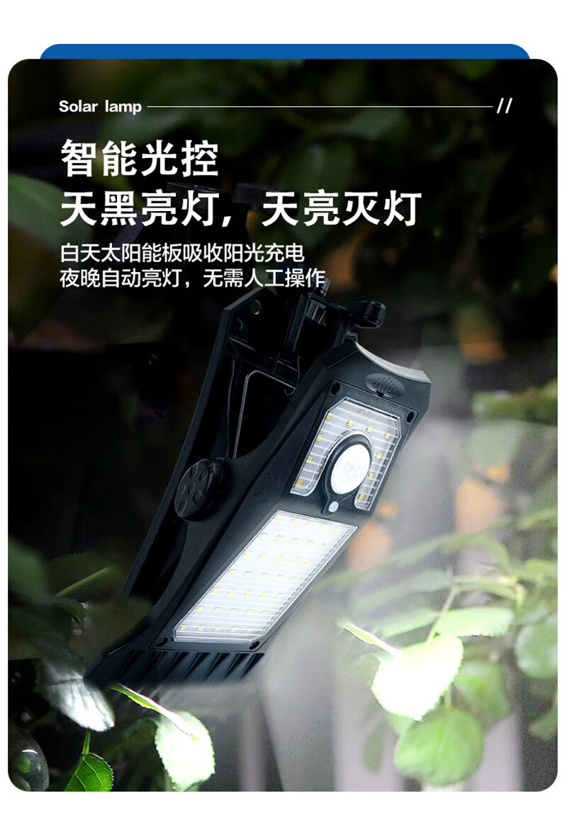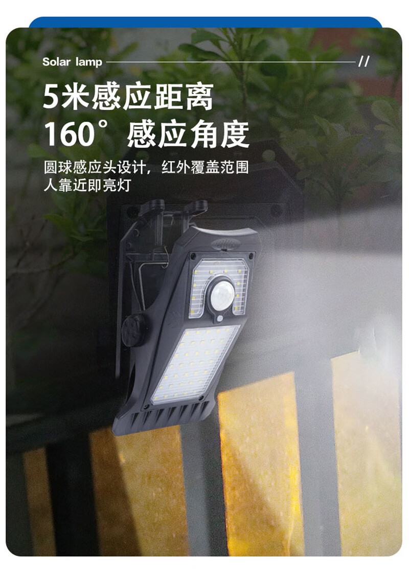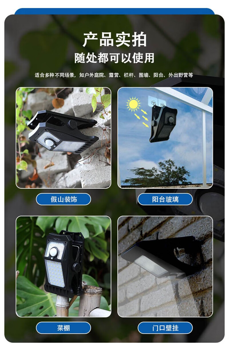 Tanbeiman Solar Clip Light Courtyard Lighting Wall Lamp Balcony Terrace Garden Layout Human Body Sensing Outdoor LED Light Solar Clip Light No wiring, no need to plug in, ready to install and use