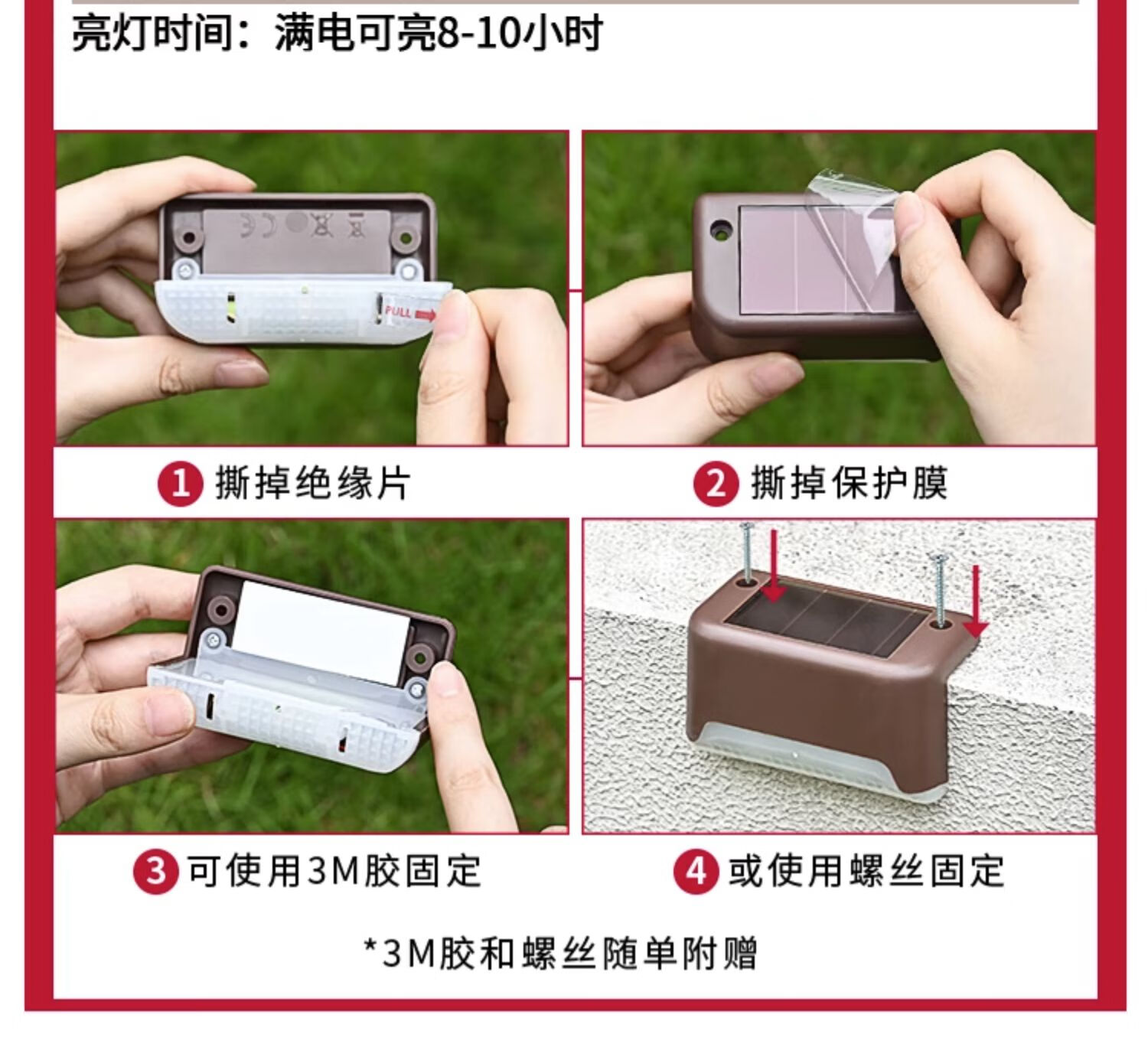 Micro Solar Outdoor Step Light Garden Light Wall Guardrail Light Railing Fence Stair Balcony Ambient Light Lantern 12 Pack Colored Light Brown Shell
