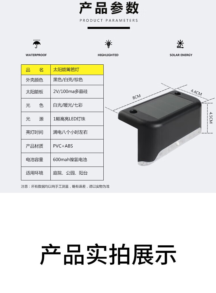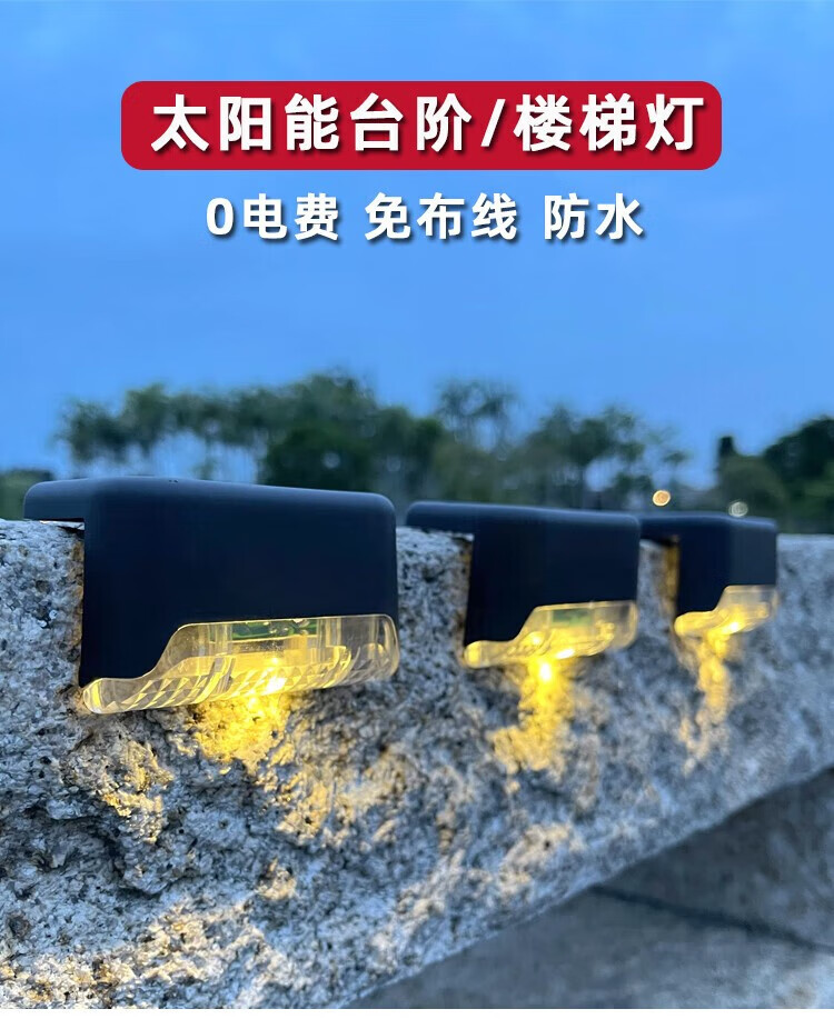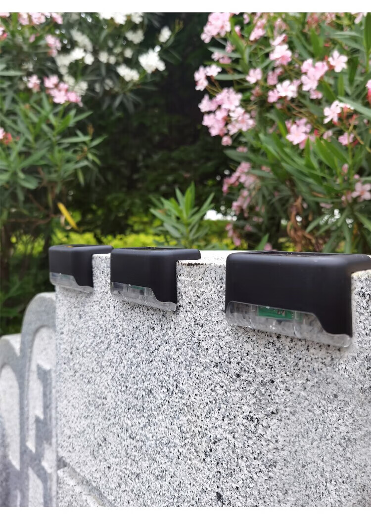 Jiuzhou Zhonghe Solar Outdoor Garden Light New Home Garden Layout Waterproof Stair Step Light Wall Railing Decorative Light Ordinary Black Shell Warm Light 8 Pack
