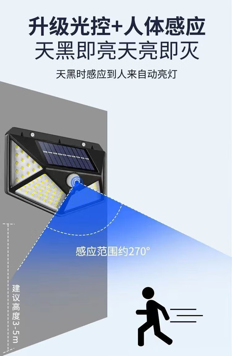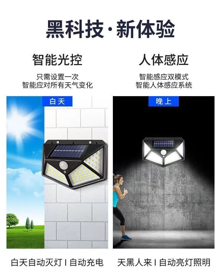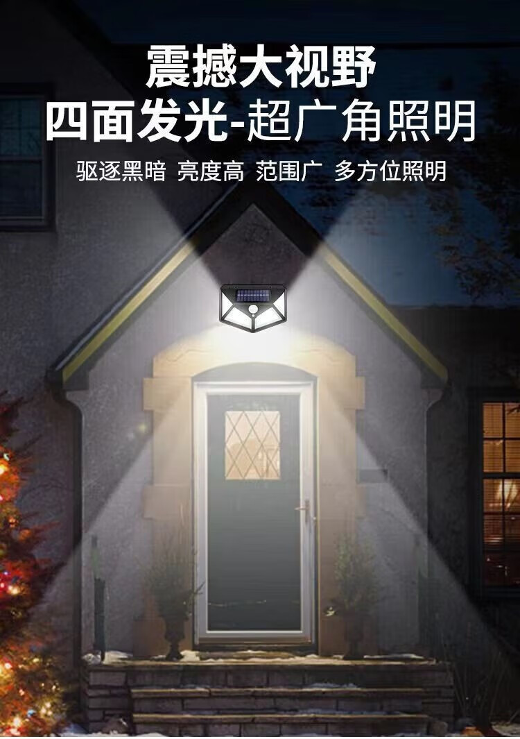 Jiuzhou Zhonghe Voice Controlled Sensor Light Solar Outdoor Light Wireless Four-Side Lighting Garden Rural Waterproof All-in-one Walk-Out Lighting 100LED