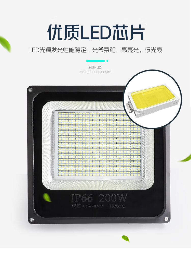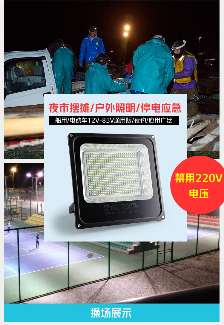 索亚达LED低压投光灯12V24V36V48V60V交直流户外船用电瓶夜市地摊照明灯 低压投光灯(12v-85v)50w