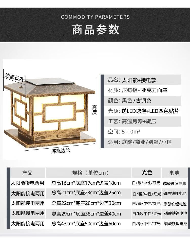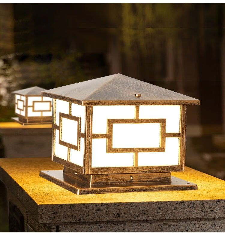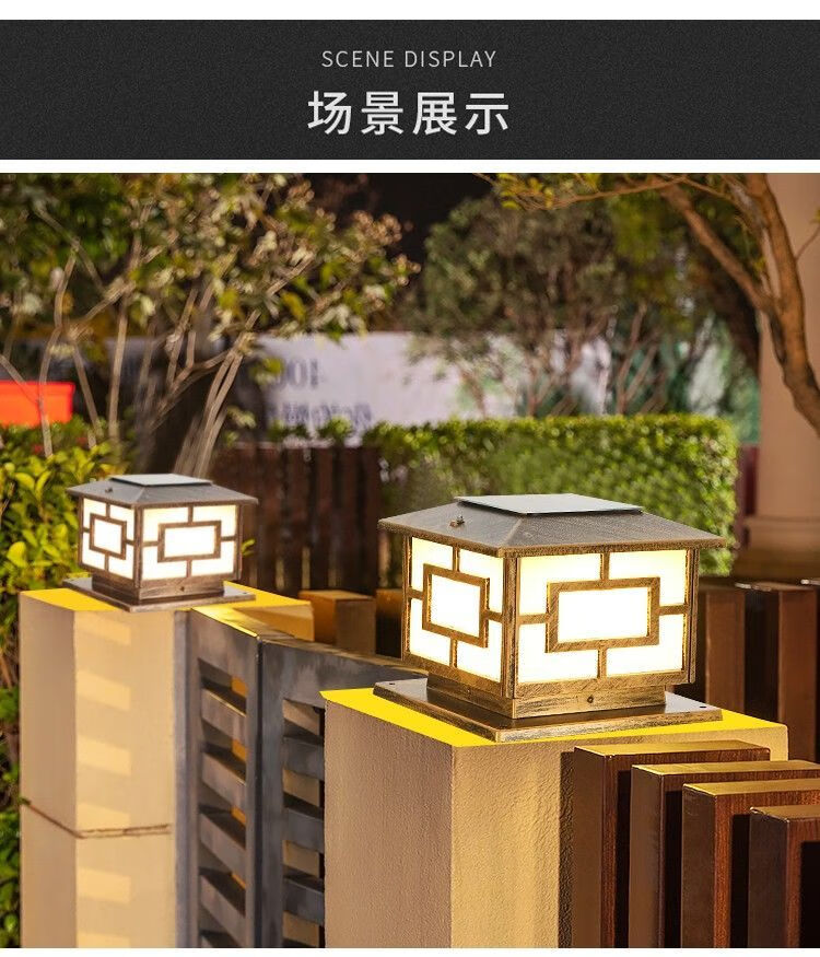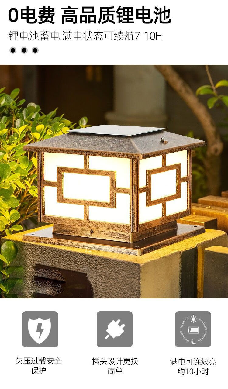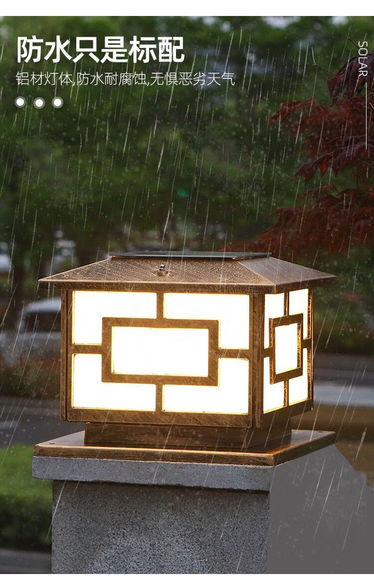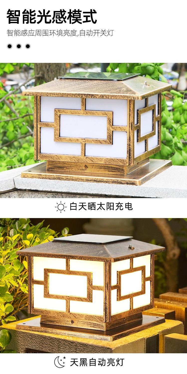 Xuan Kashi solar wall courtyard column head lamp gate column wall lamp room outdoor waterproof villa household super bright power connection 40cm thick bronze color (mains type + light source