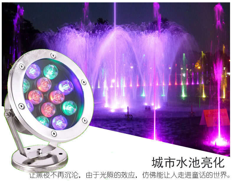 LED underwater light 3w6w9w12w18w pool underwater light fish pond landscape light fountain light waterproof colorful spotlight 6 watts colorful automatic dimming