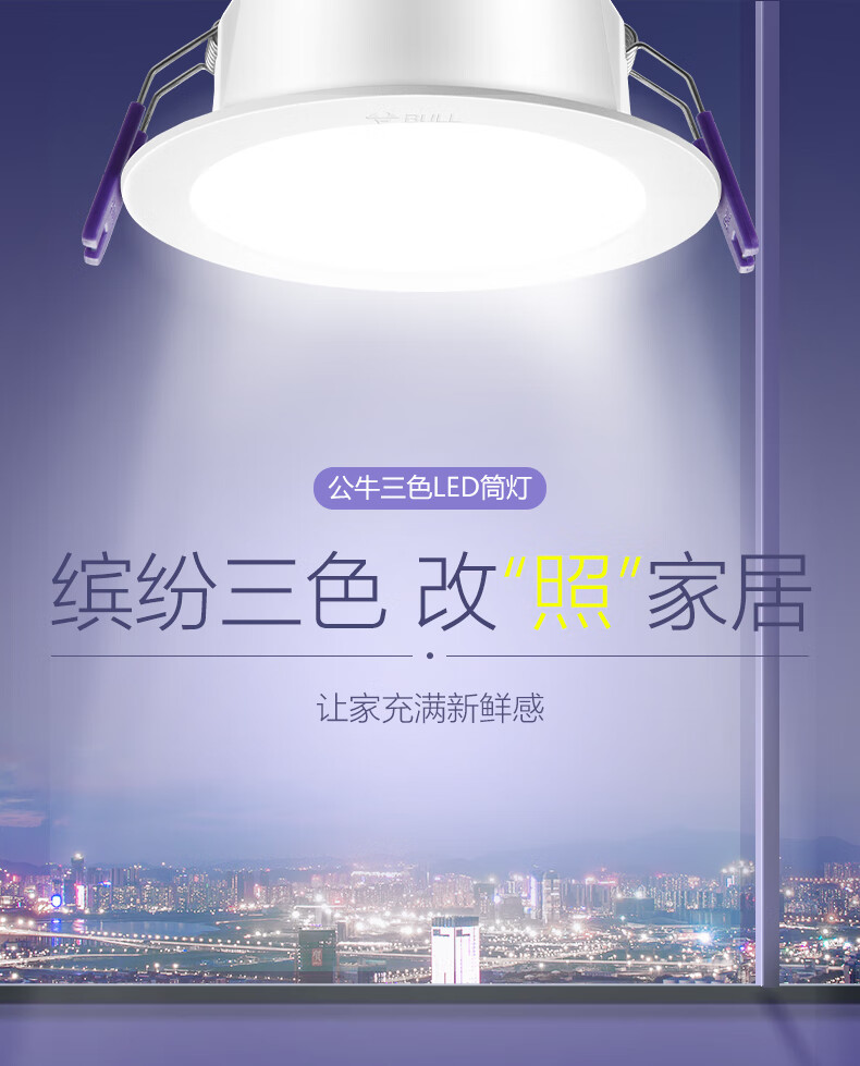 Downlight de taureau LED lumière de trou de maison allée couloir lampe oeil de taureau lumière de baril lumière de trou ultra-mince plafond intégré tricolore 3 pouces 4W downlight tricolore/paquet unique