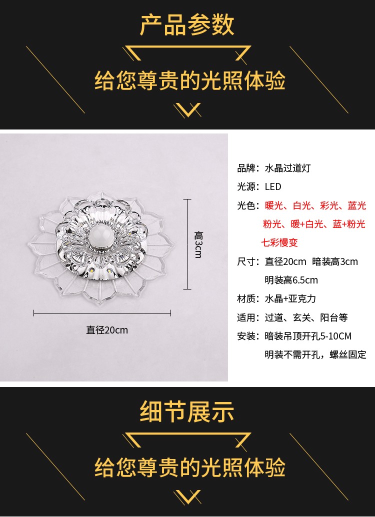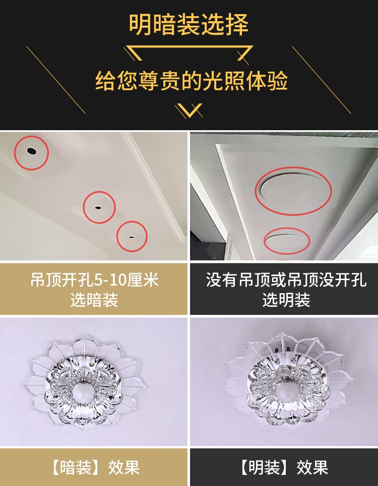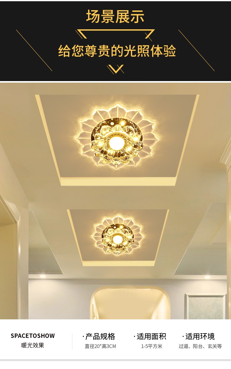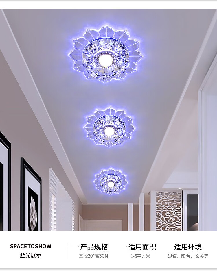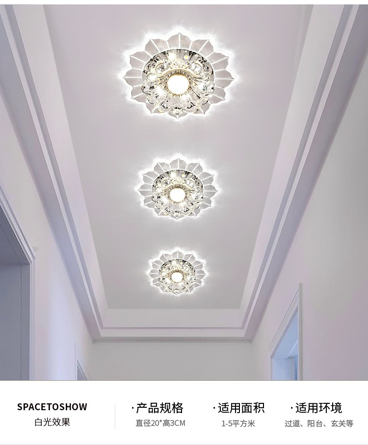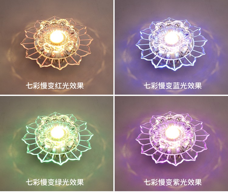 Jinglei LED coloré allée lumière couloir lumière salon couleur spot downlight intégré cristal hall d'entrée lumière d'entrée LED 5 watts avec lumière blanche haute luminosité installation dissimulée