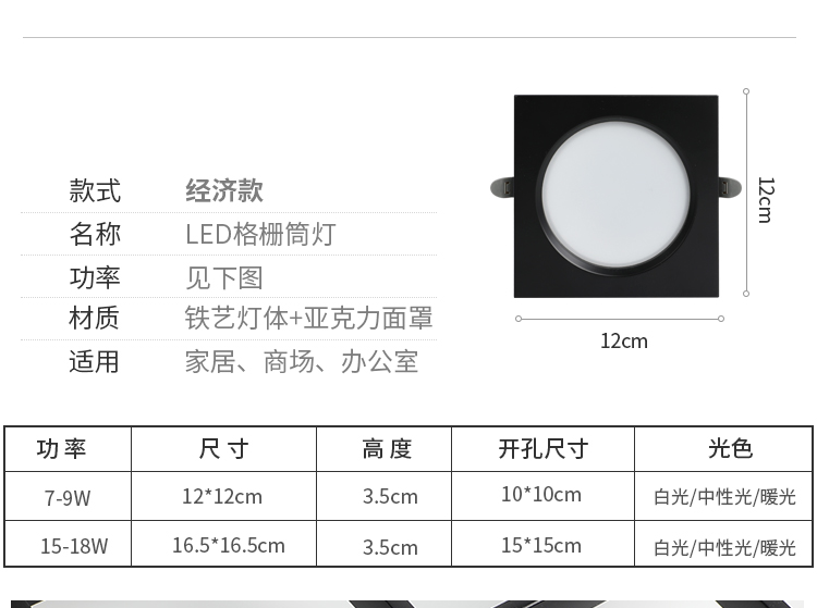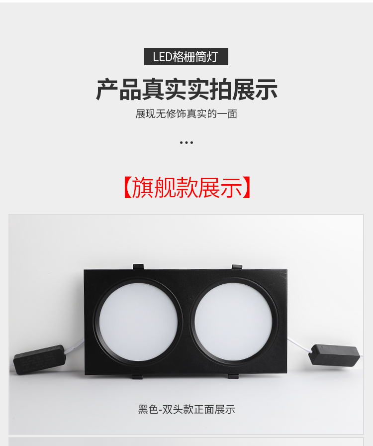 led格栅灯15x15铝网格吊顶双头10*20黑色葡萄架专用方形筒灯射灯 旗舰款黑15x15 24w白光
