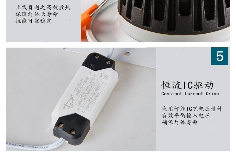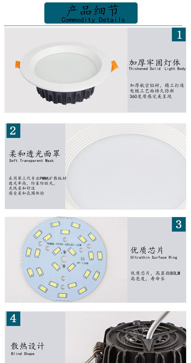 鑫汐 led筒灯嵌入式贴片压铸铝防眩光商场工程圆形天花灯 4寸12W 开孔110mm面径143 三色变光