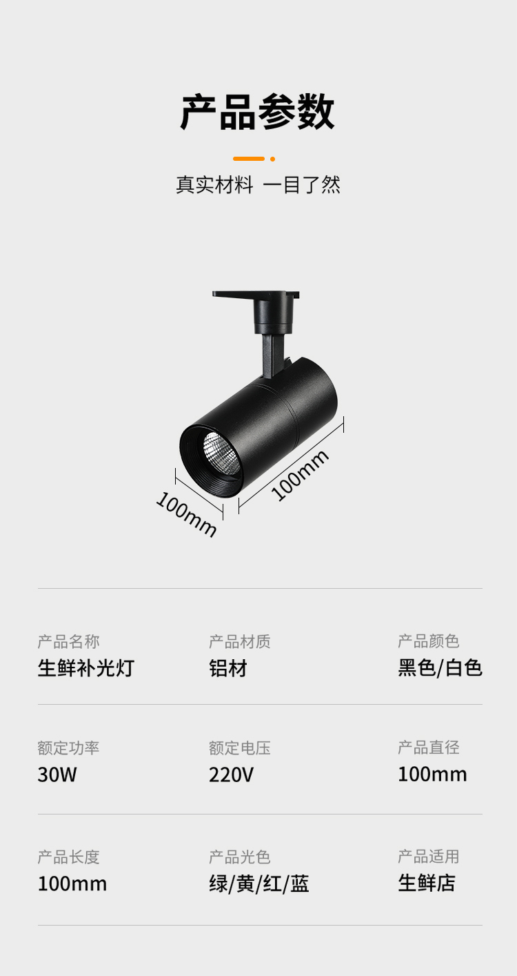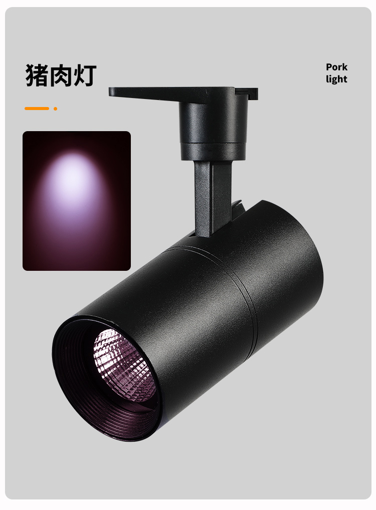Projecteur LED sur rail super lumineux pour fruits, légumes, porc et produits frais, spécial magasin commercial 220 V type rail tout en aluminium COB éclairage sur rail zone de viande fraîche lumière rouge vif 30 W coque noire et blanche