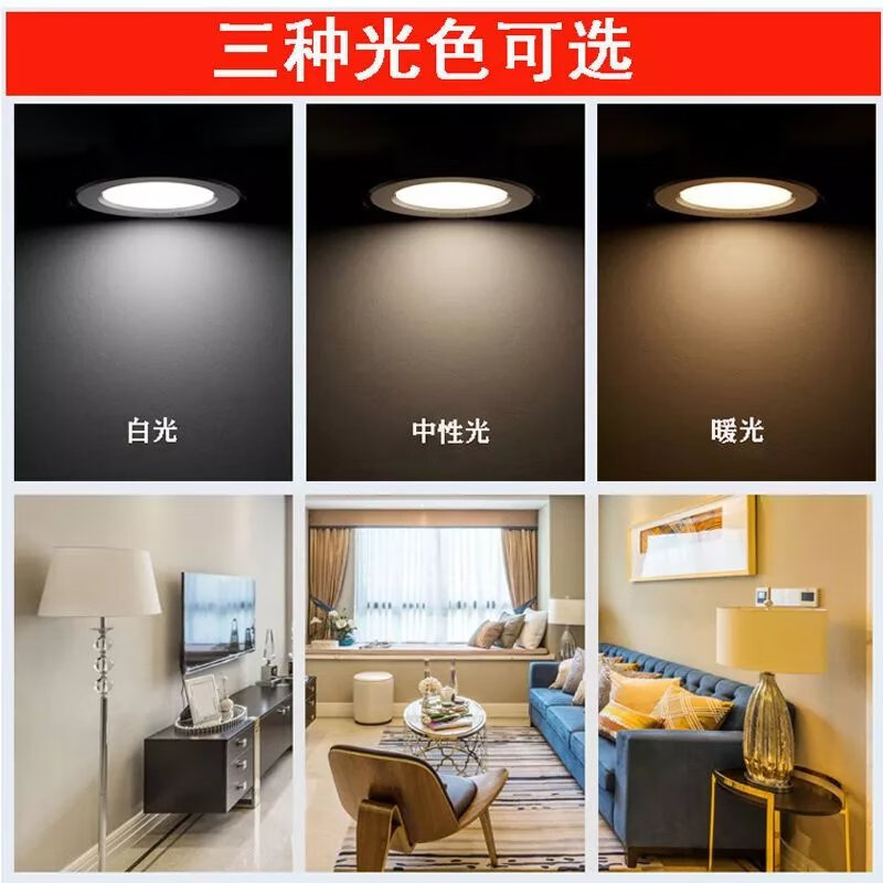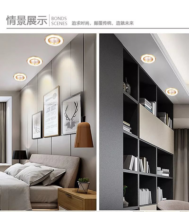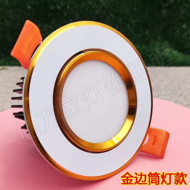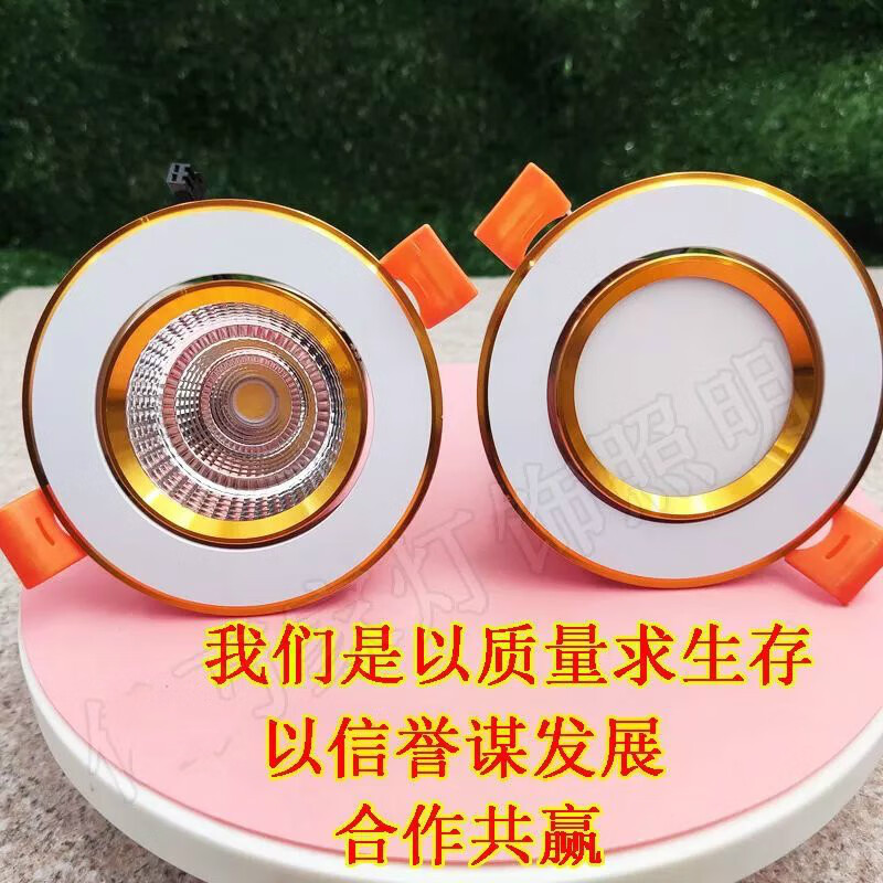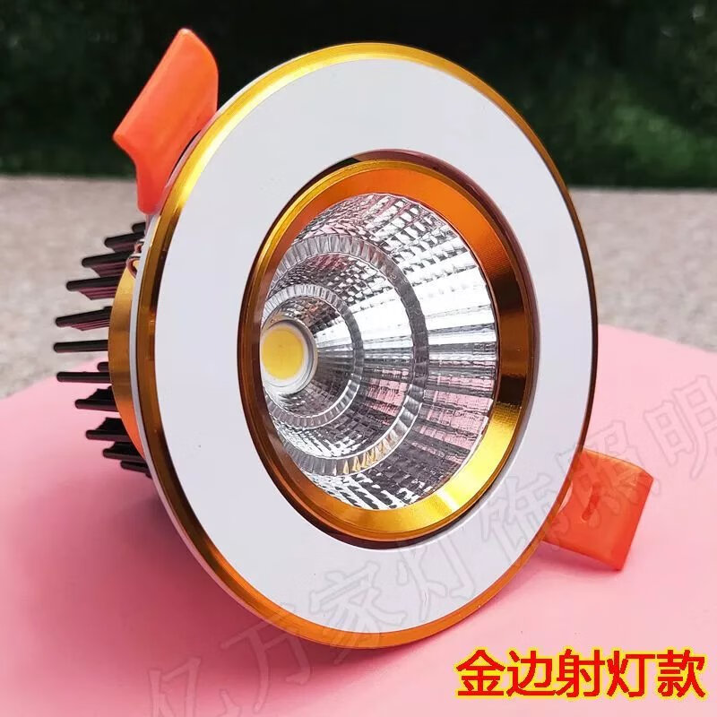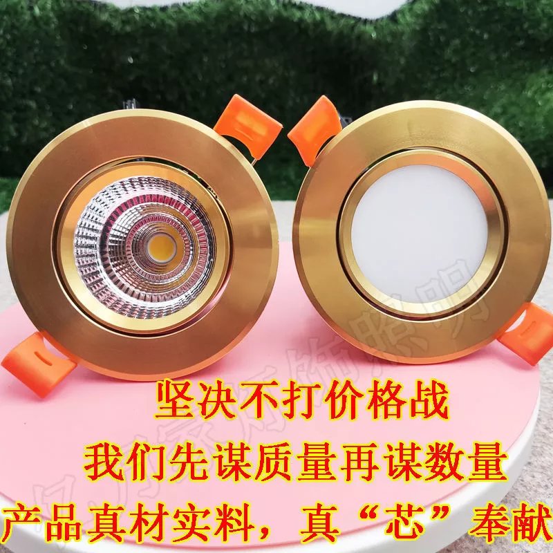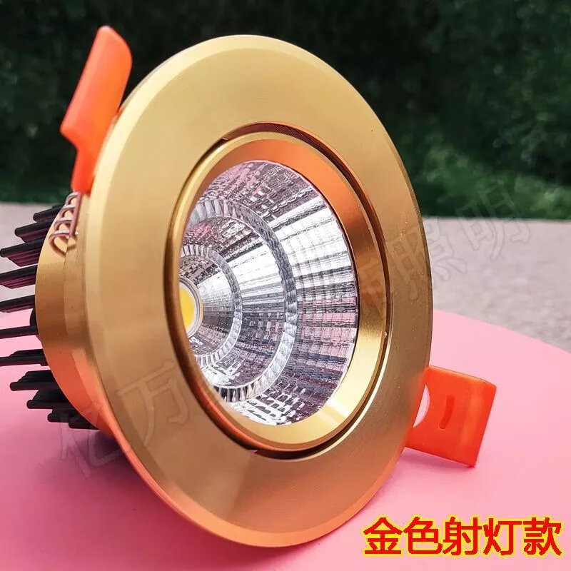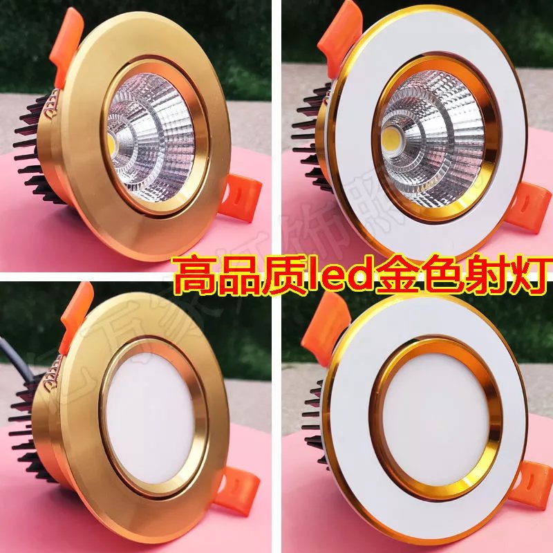 Golden cob spotlight embedded led downlight three-color dimming living room ceiling hole light 3W opening 6 7 9 11cm 7w warm light opening 9-9.5cm golden downlight