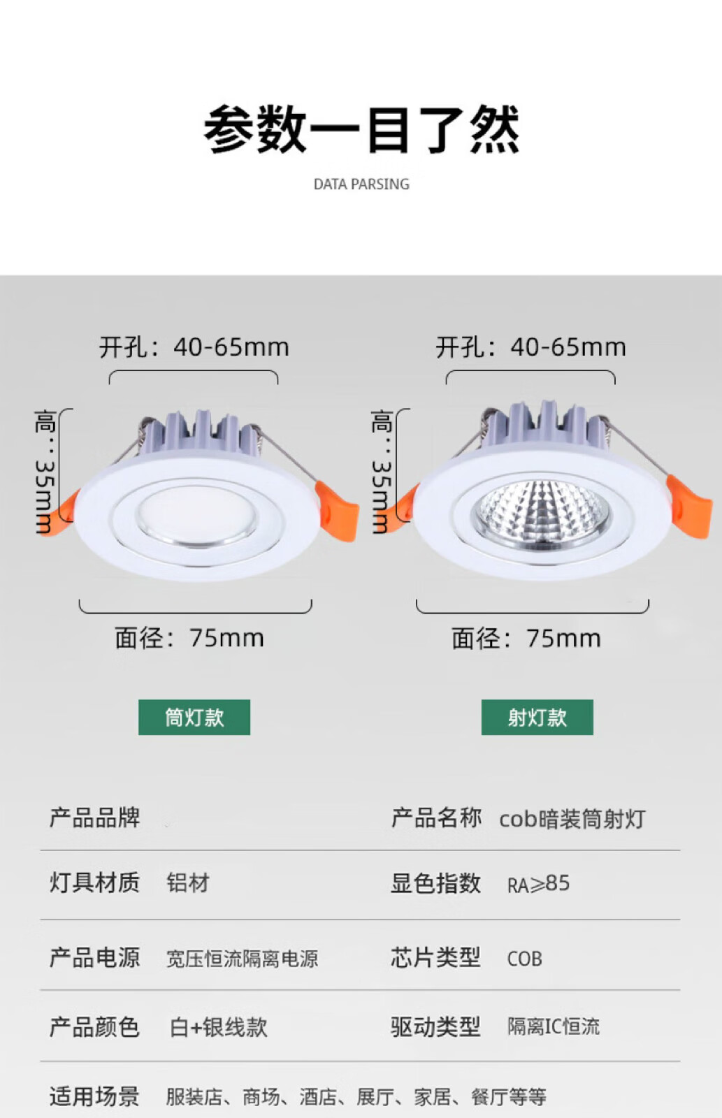 祎琳(yilin)led小筒灯3W5W开孔4cm4.5 5 5.5 6公分45 50 55mm客厅cob酒柜射灯 射灯款3W暖光