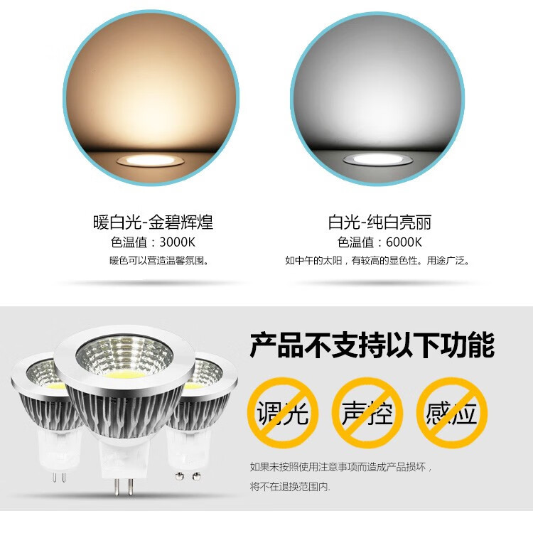 Youmai LED spotlight COB flicker-free MR16 lamp cup 12V spotlight bulb two-pin socket light embedded light source 5W MR16 warm light (12V)
