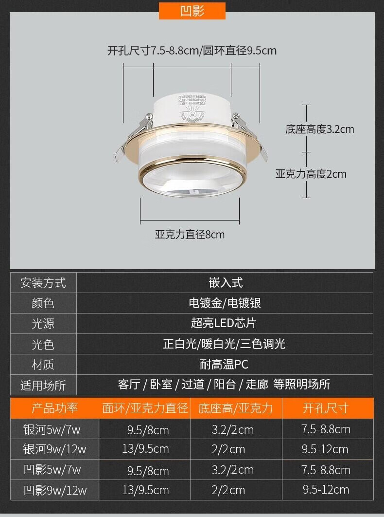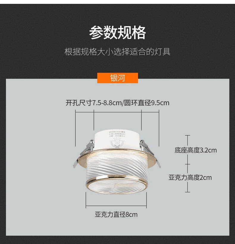Yijixiguang light luxury downlight led embedded crystal aisle light corridor light entrance ceiling internet celebrity creative ceiling light entry spotlight opening 7.5cm hole light Galaxy - small silver 7W (opening 7.5-8.8cm) three-color light (white light + warm light + natural light)