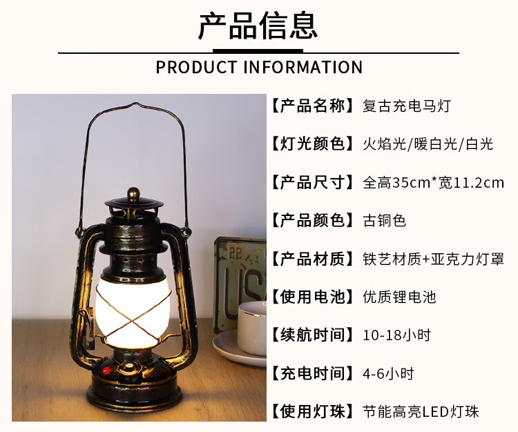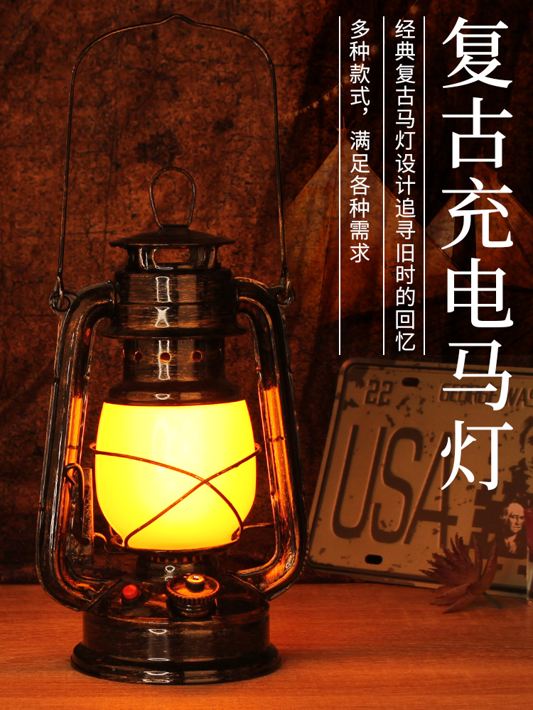 Rechargeable kerosene lamp, retro old-fashioned outdoor props, camping lamp, bar table lamp, atmosphere lamp, table lamp, lantern, horse lantern, A flame light + charger (stepless dimming), dimmer switch