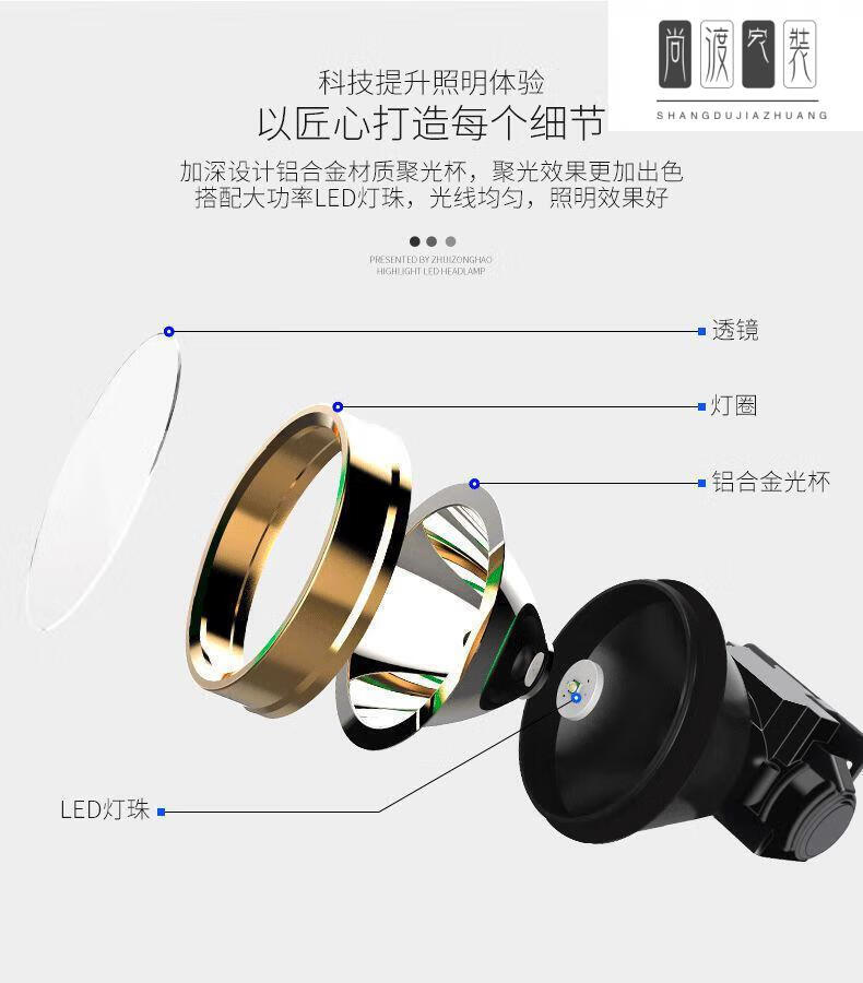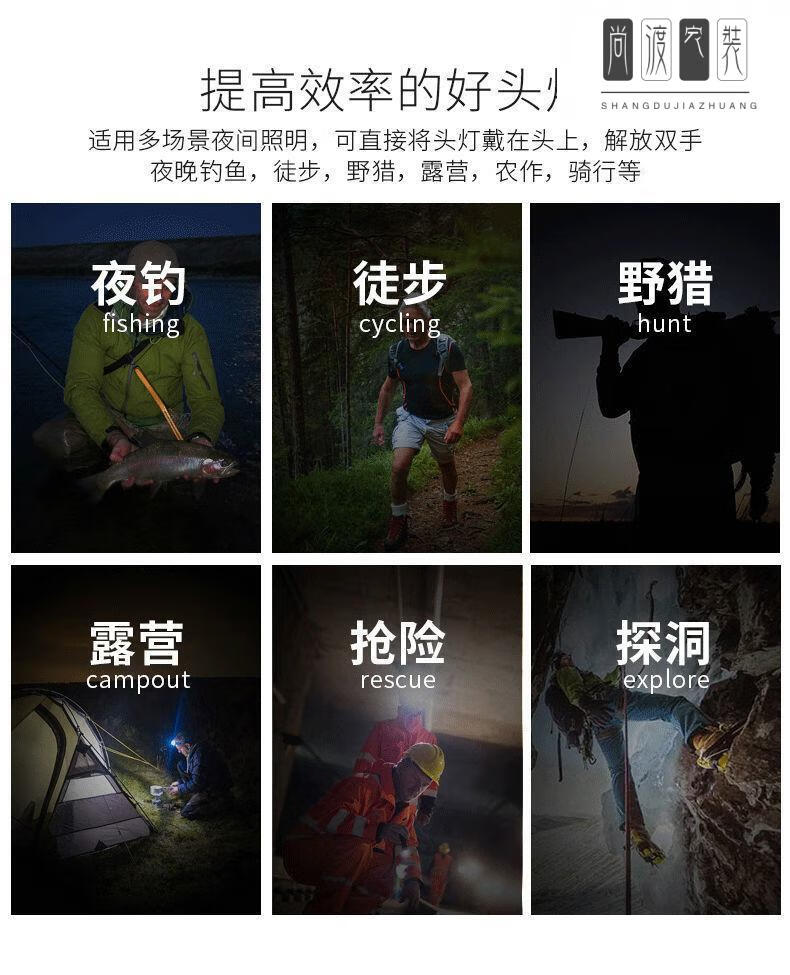 Vinoa LED headlight strong light rechargeable long-range head-mounted household lithium battery flashlight ultra-bright hernia night fishing miner's lamp luxury ultra-bright 79000V flash charge 79-hour model newbie benefits praise super bright headlamp