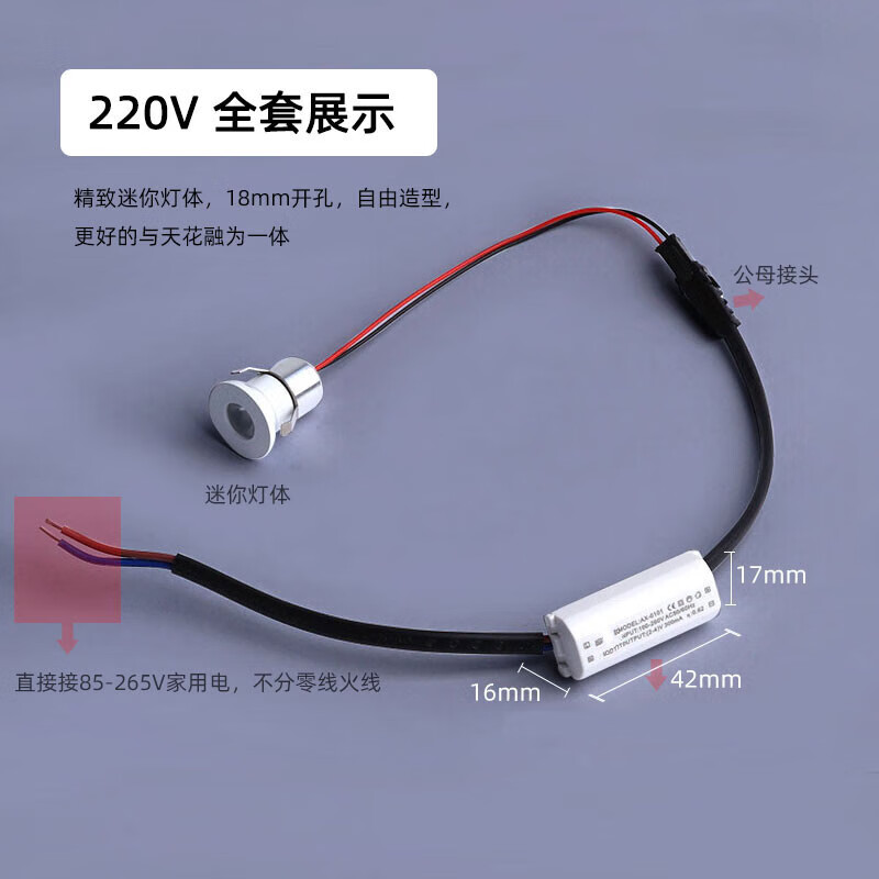 Embedded LED mini spotlight opening 18mm 1.8 cm starry sky ceiling light 1W micro ultra small 220v white 1w neutral light opening 18mm