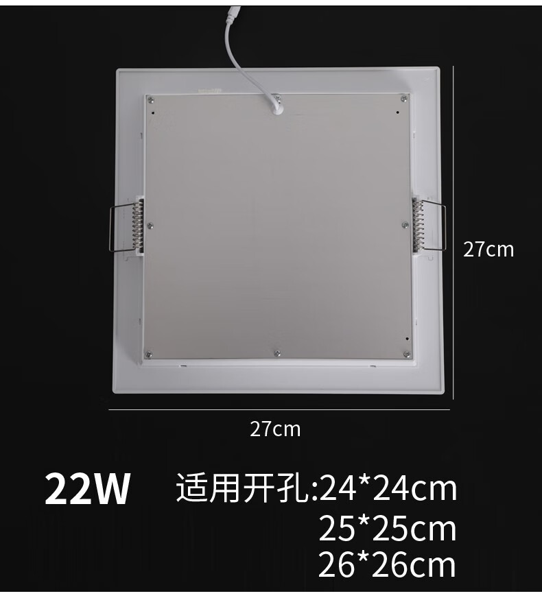 灯维方形老款厨卫灯卡扣暗装嵌入式LED厨房阳台浴室卫生间吸顶开孔17 18w白光外径24.3开孔22X22 cm