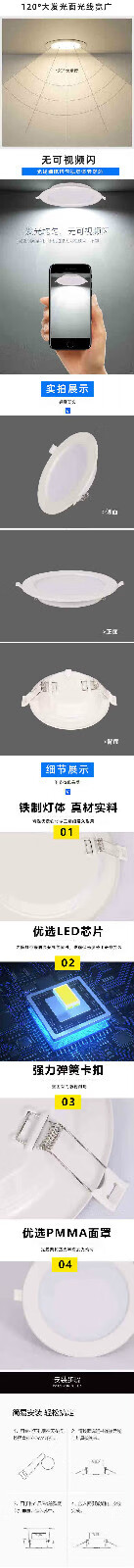 Yilin led ultra-thin downlight embedded opening 4 inches 6 inches 8 inches 12W 18W hole light ceiling round 24w ceiling light 2.5 inches 5w white light opening 7 to 8.5 cm