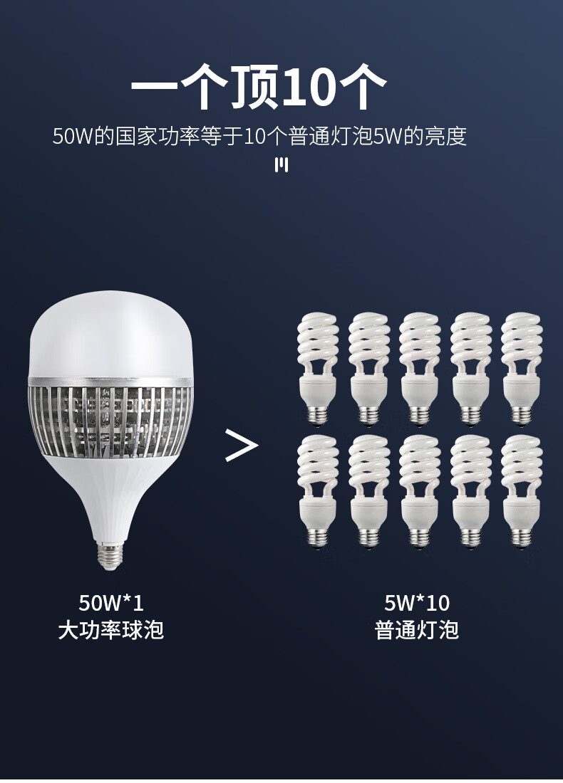 High-power LED bulb super bright E27 screw socket 80W150W household energy-saving lamp construction site factory workshop lighting super bright diamond model 40W () other white