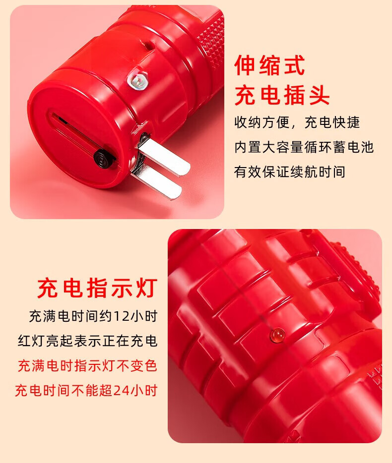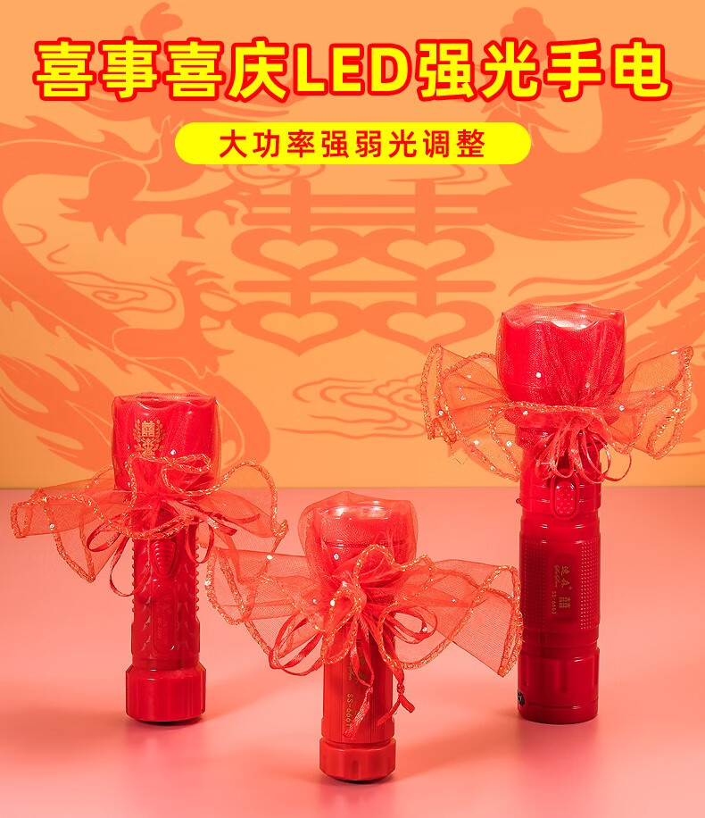 维诺亚结婚红色手电筒强光充电入伙电筒 大号带囍字+红纱网 长度21cm强