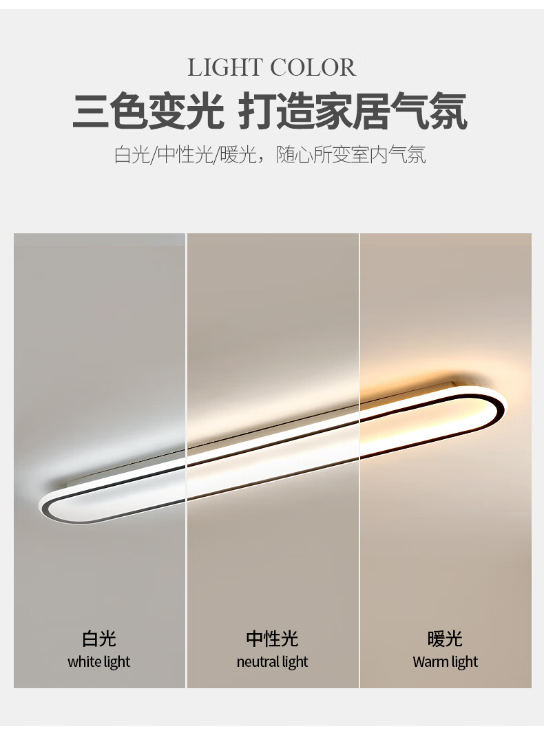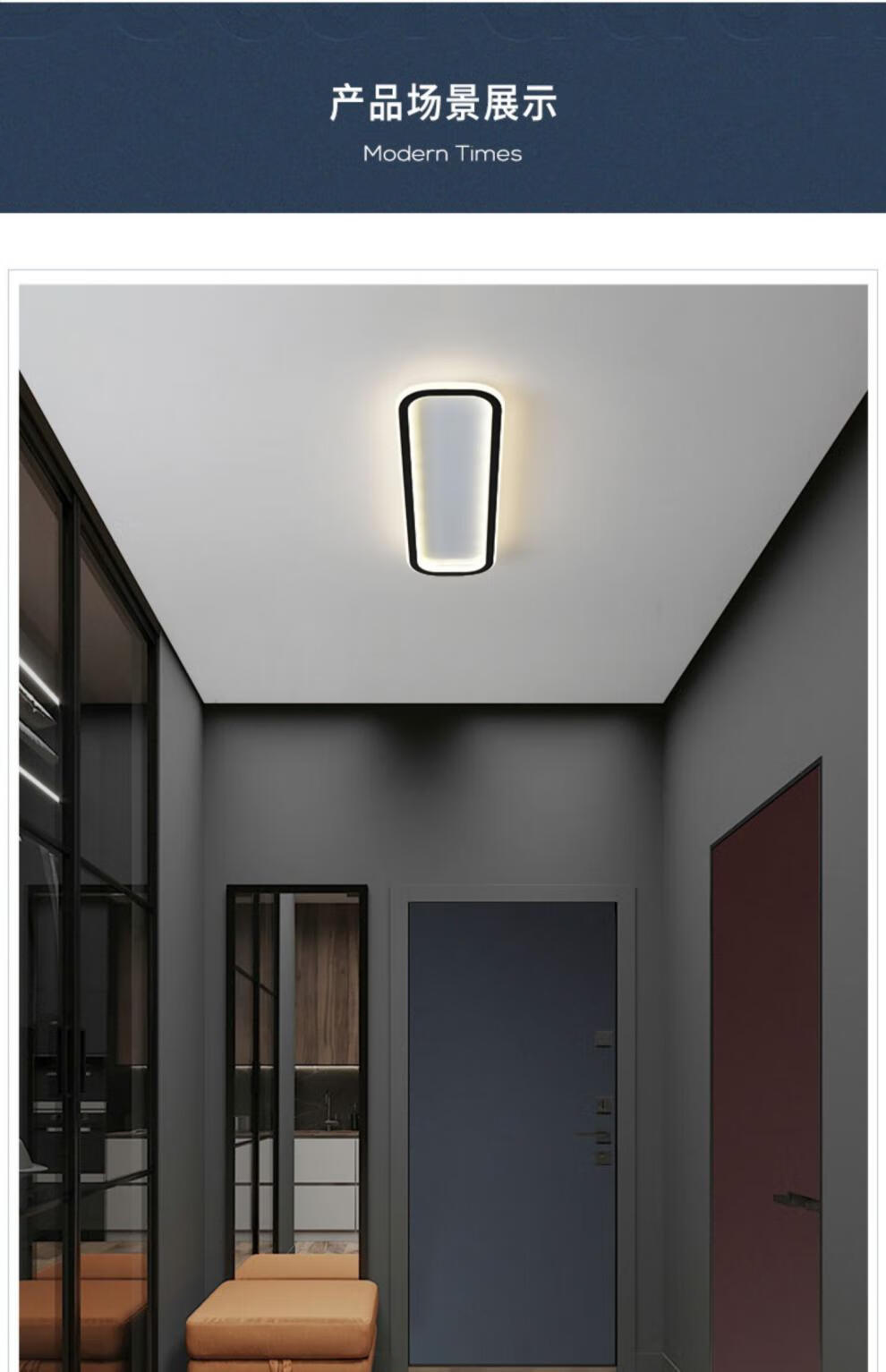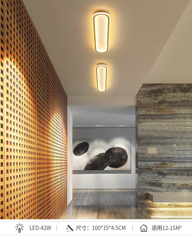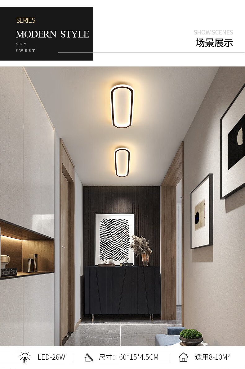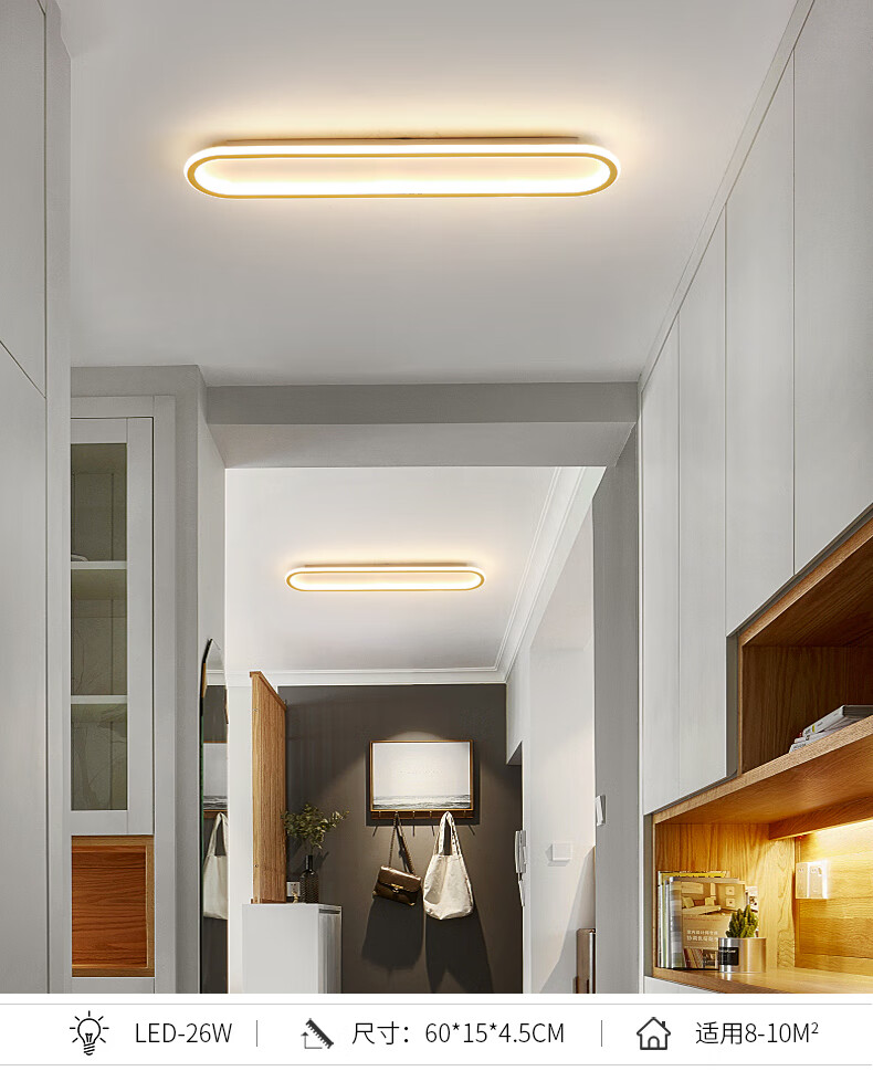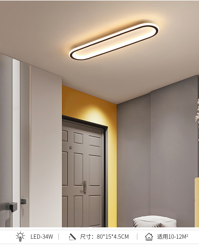 Weihuo long aisle corridor light entrance balcony light led ceiling light modern simple Nordic bedroom light minimalist 2021 black/rounded corner 30*15CM-15W white light