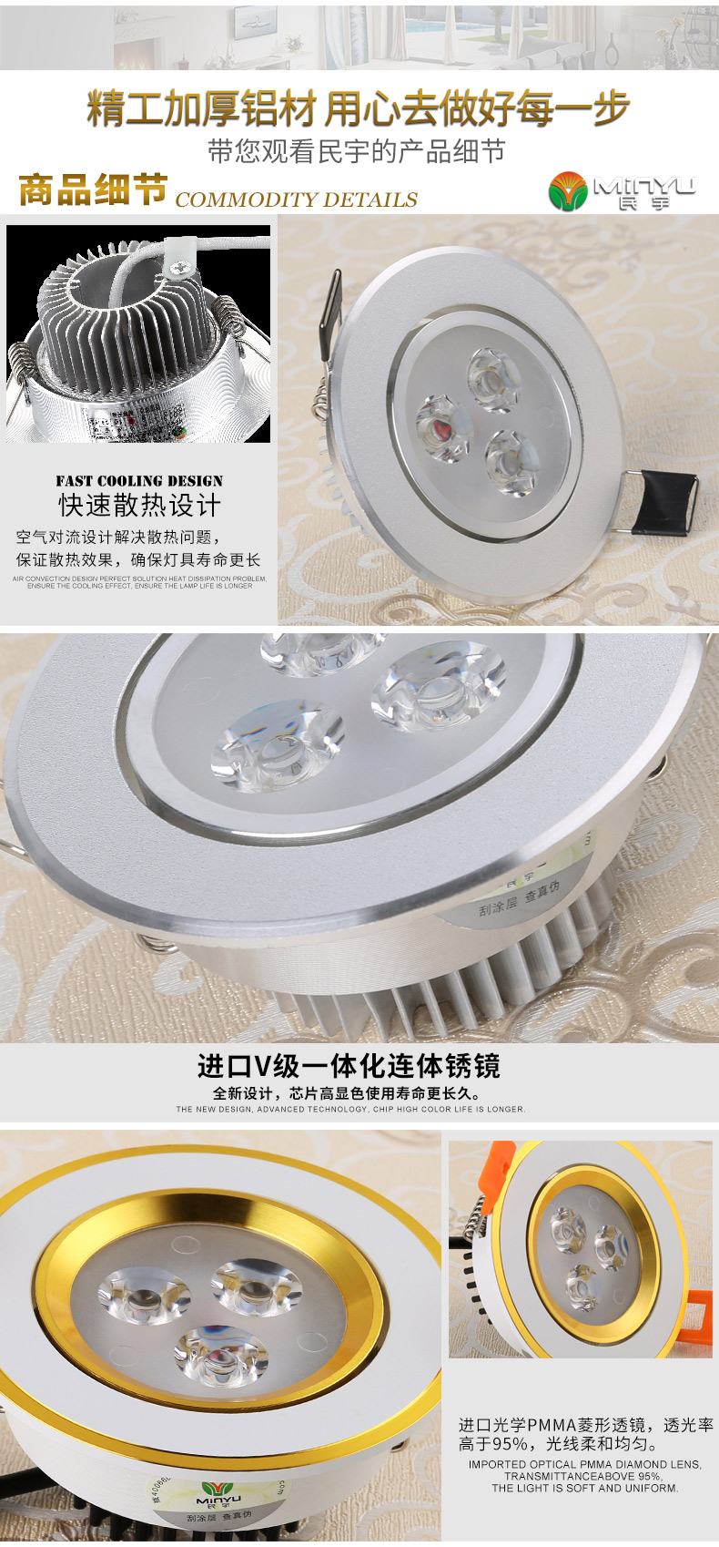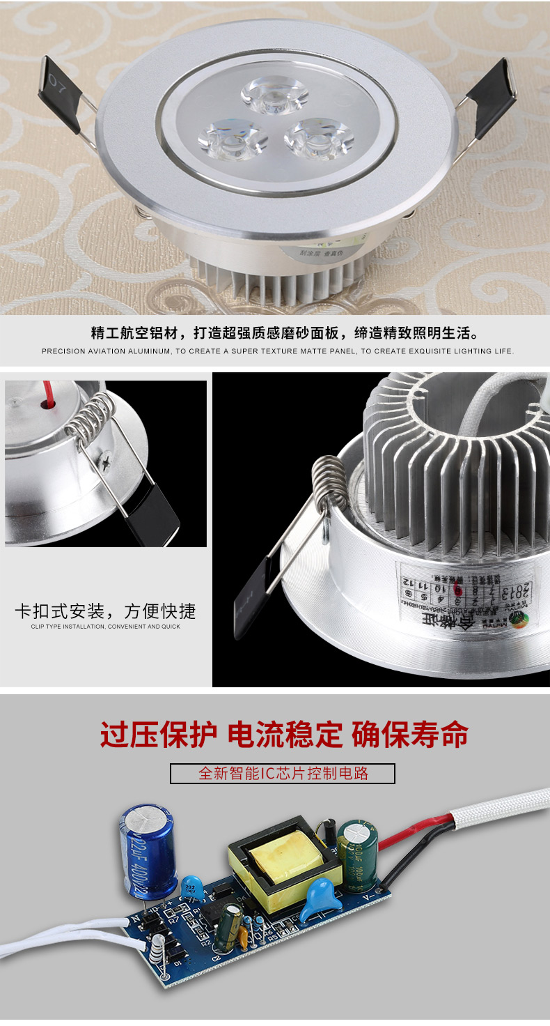 Minyu LED spotlight 3W embedded downlight home decoration living room opening 5/5.5/6.5/7CM7.5 8cm ceiling light sand silver opening 65-75 3W+ positive white light