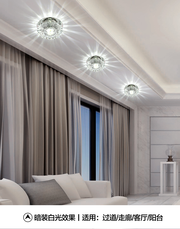 Shengsen Wohnzimmer-Deckenlochlicht, eingebettetes Downlight, Foyer-Strahler, Deckenleuchte, Kristallgang, Bullaugenlampe, Korridor, Katzenaugenlampe, 10 cm – 3 W, farbiges Licht, verdeckte Installation
