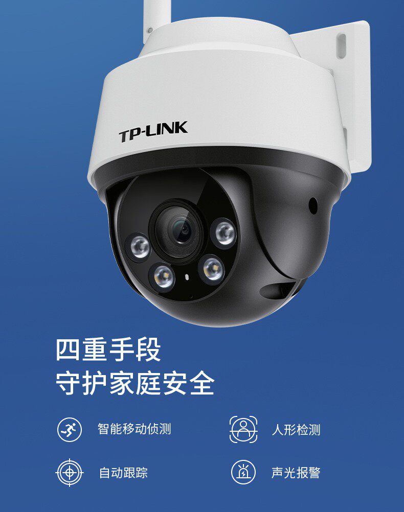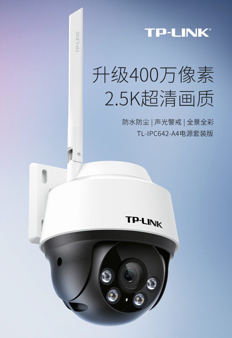 TP-LINK 监控摄像头 360度全景家用室外防水高清全彩夜视球机 无线WiFi手机远程监控器 TL-IPC642-A4
